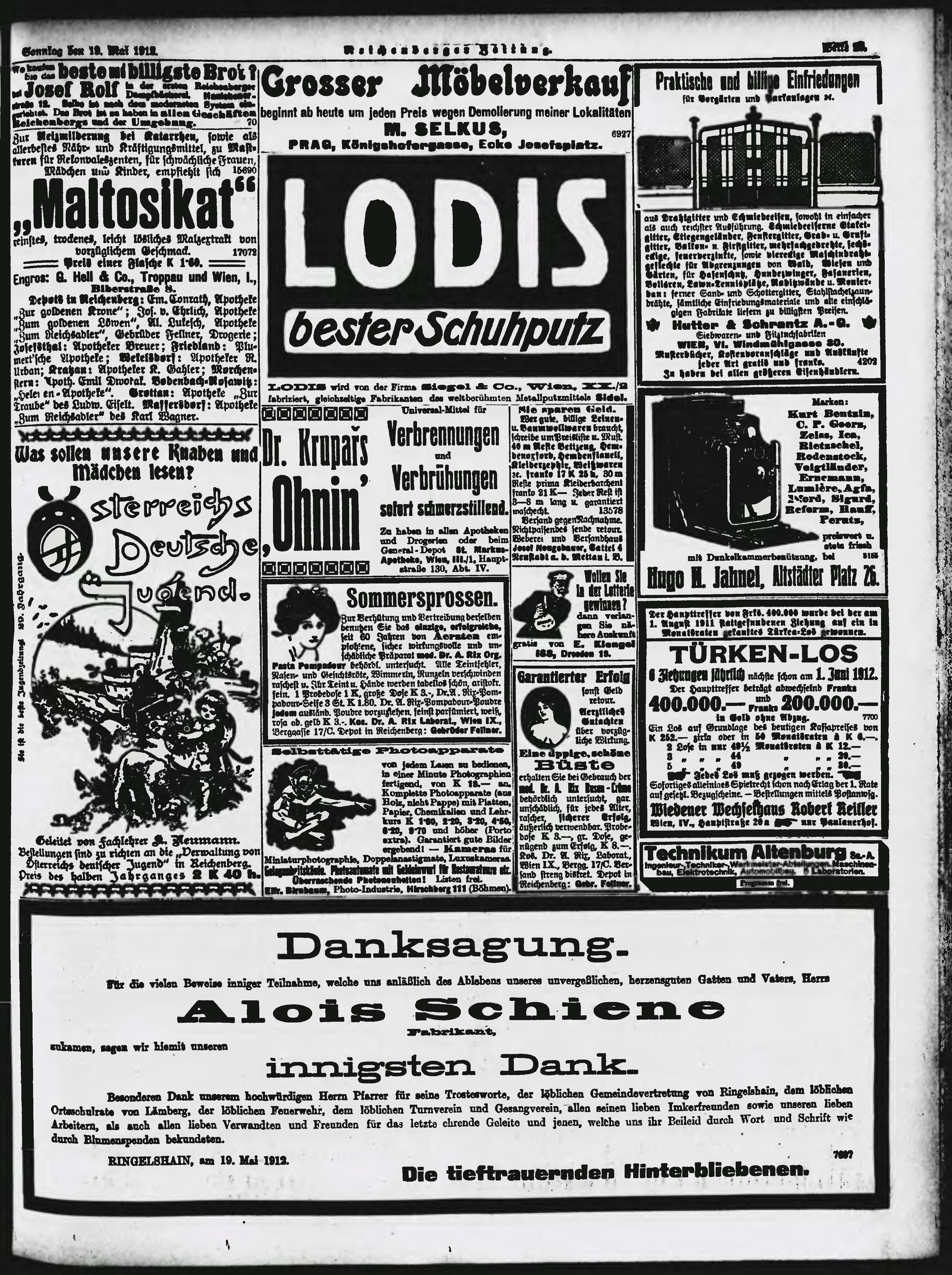 * Datum vydání výtisku: 19.5.1912 Číslo výtisku: 119 Poznámky k výtisku: ranní vydání;