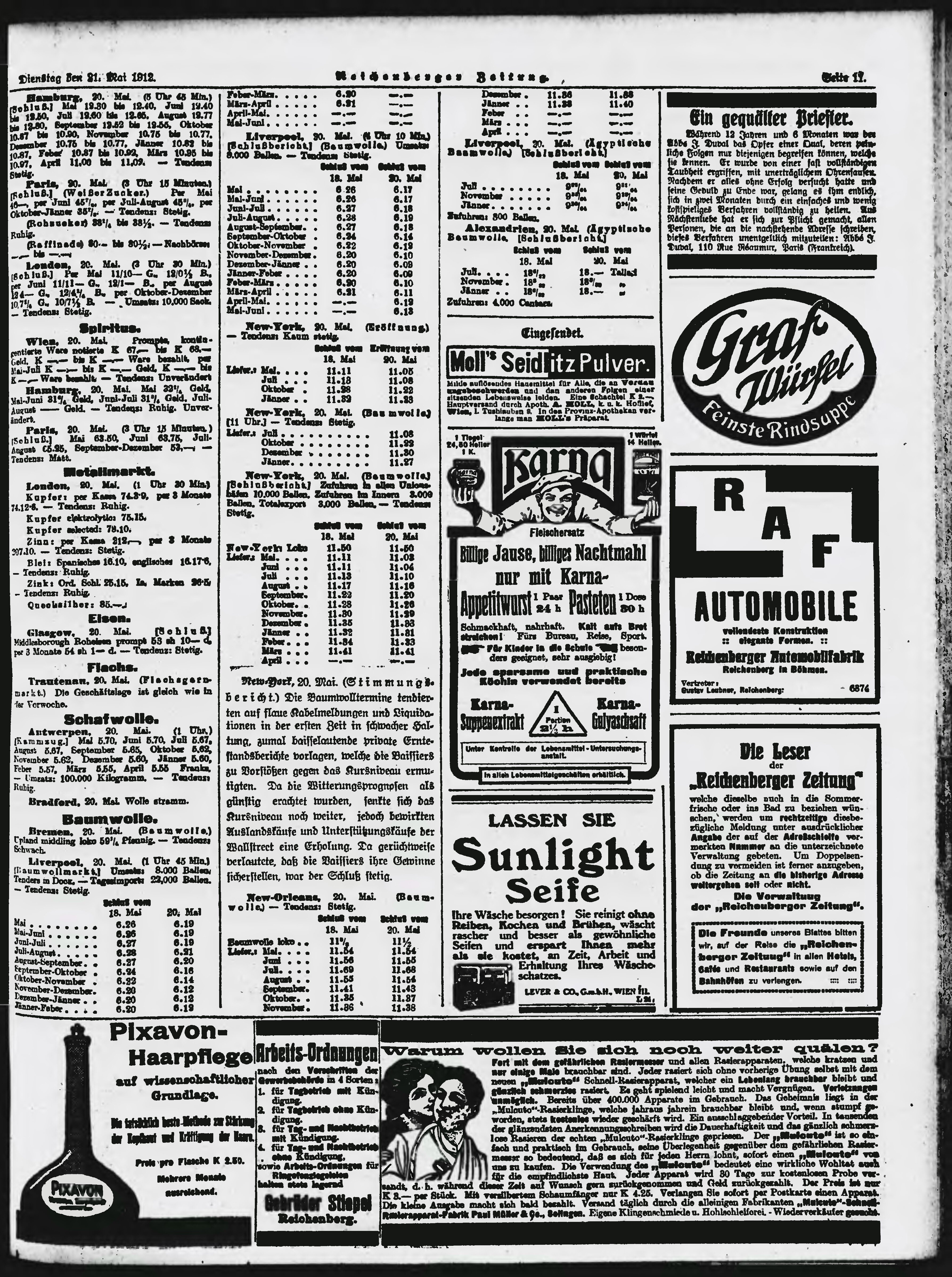 * Datum vydání výtisku: 21.5.1912 Číslo výtisku: 120 Poznámky k výtisku: ranní vydání;