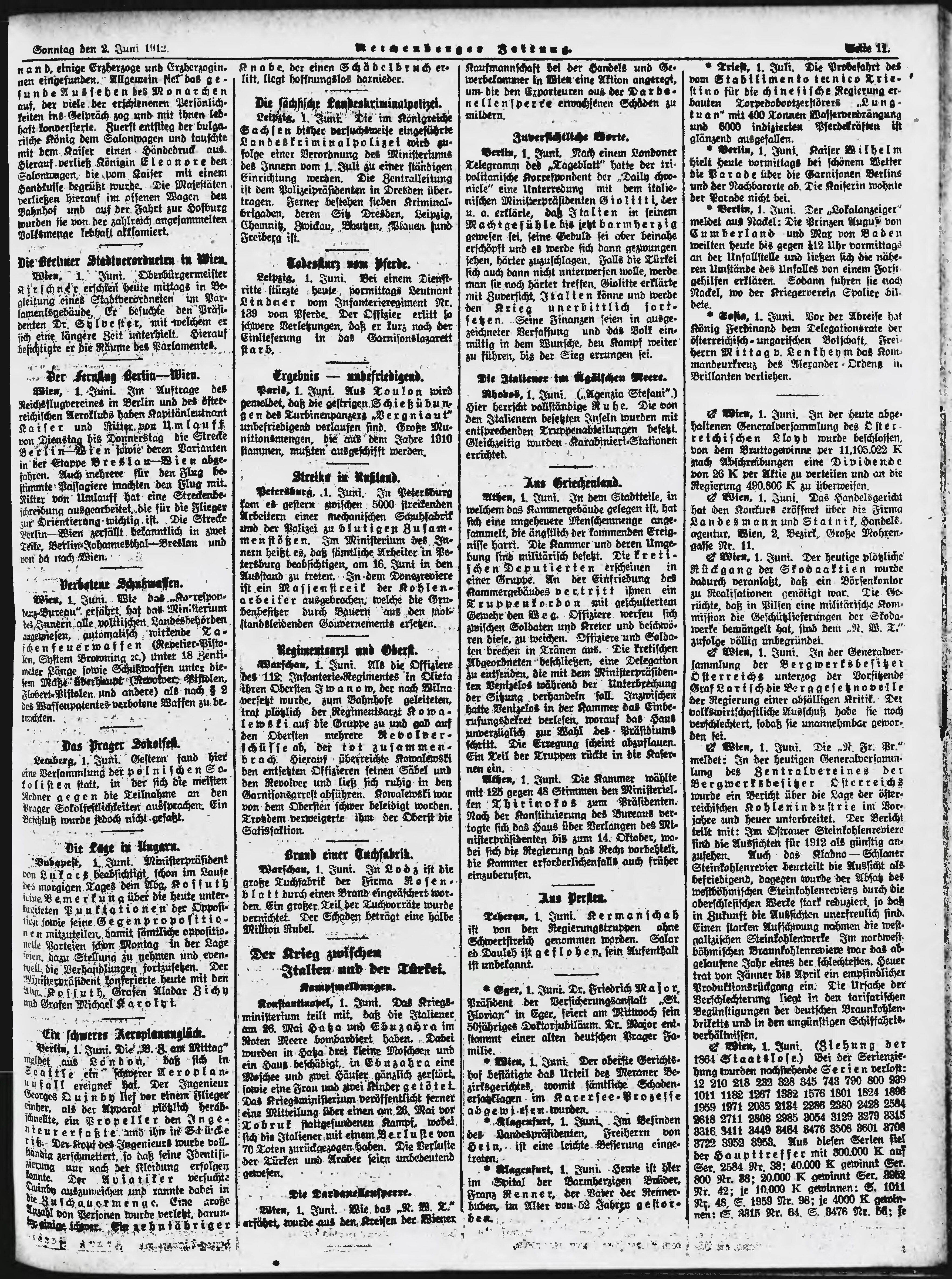 * Datum vydání výtisku: 2.6.1912 Číslo výtisku: 130 Poznámky k výtisku: ranní vydání;