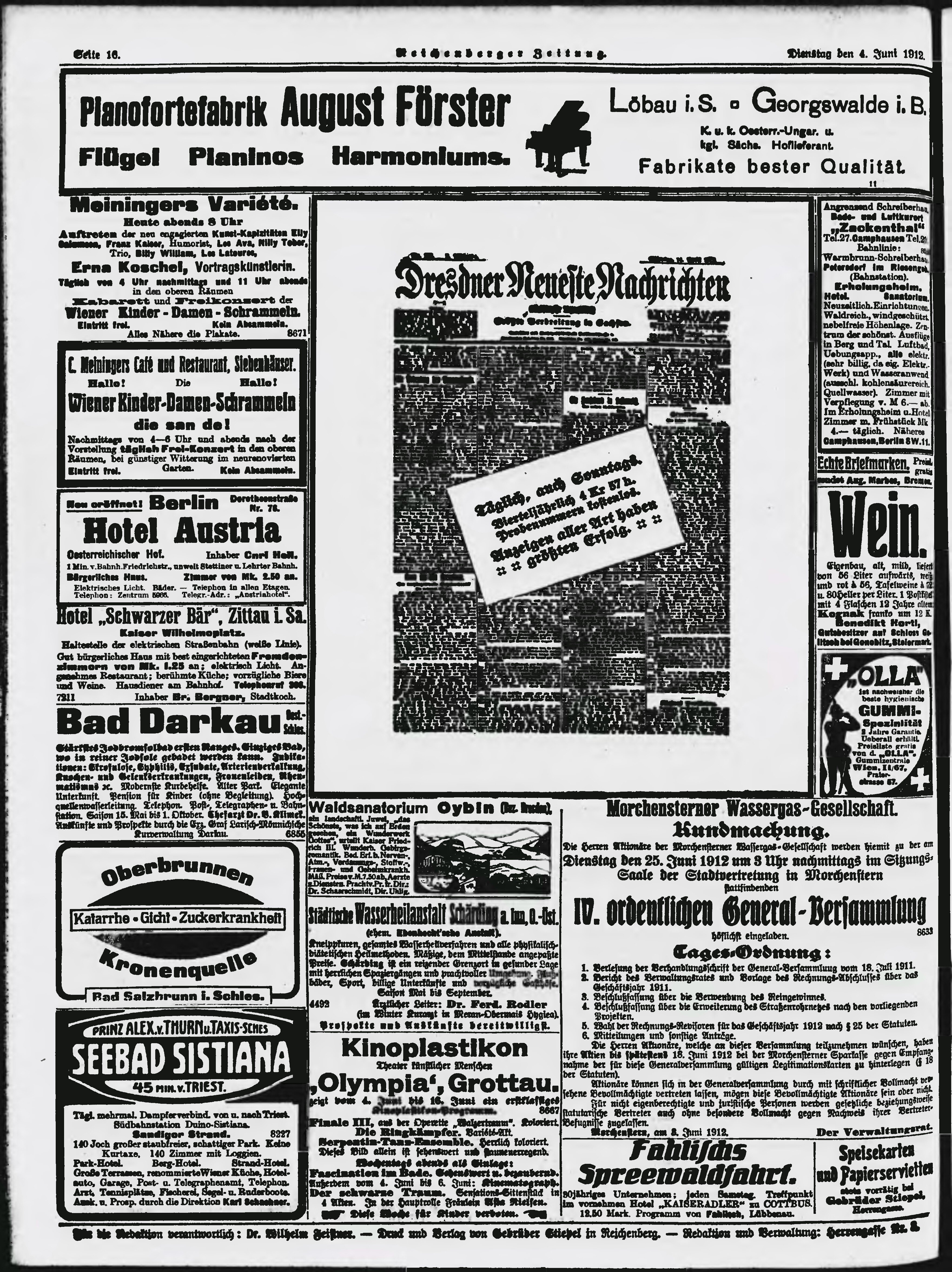 * Datum vydání výtisku: 4.6.1912 Číslo výtisku: 131 Poznámky k výtisku: ranní vydání;
