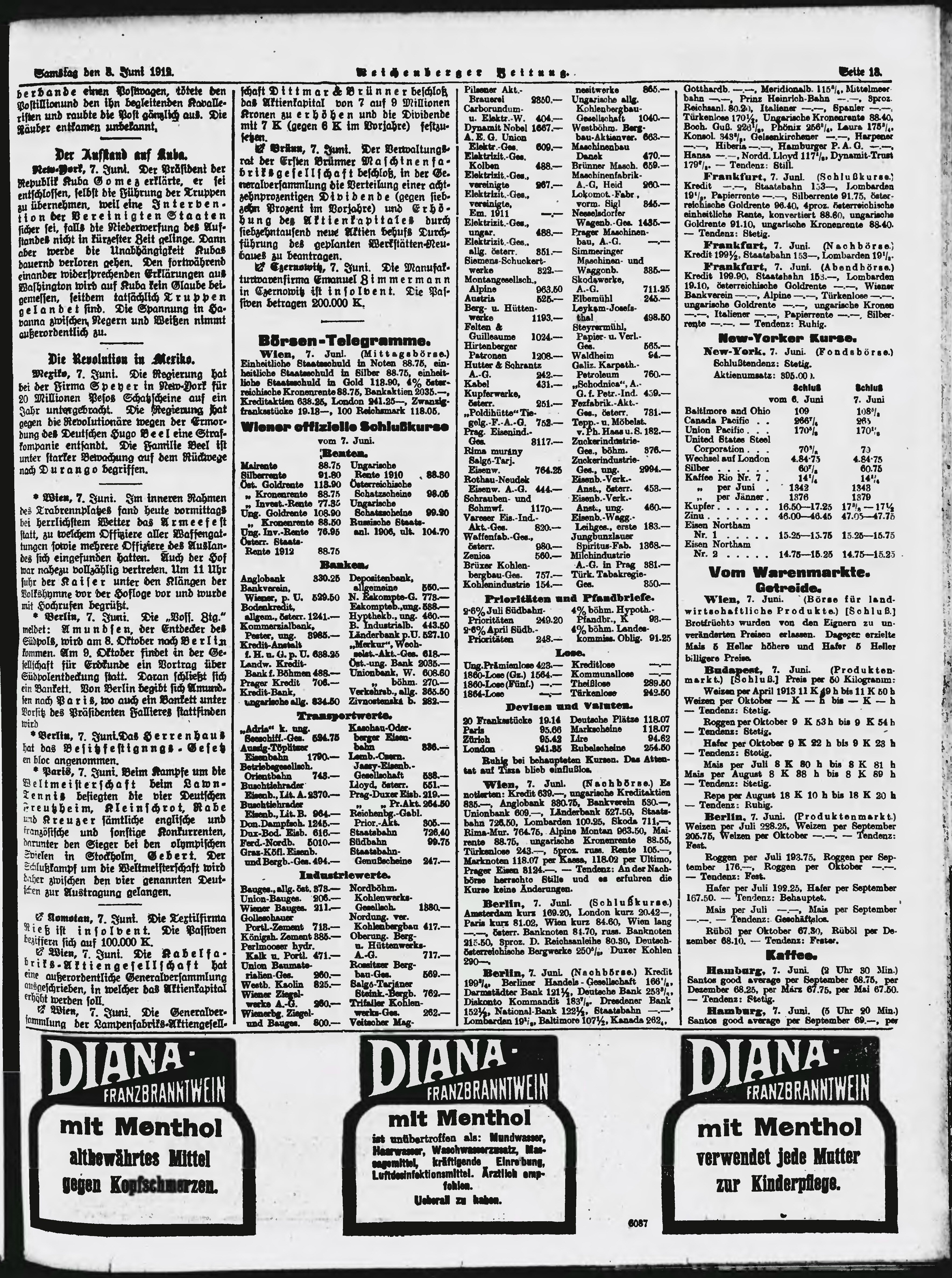 * Datum vydání výtisku: 8.6.1912 Číslo výtisku: 135 Poznámky k výtisku: ranní vydání;