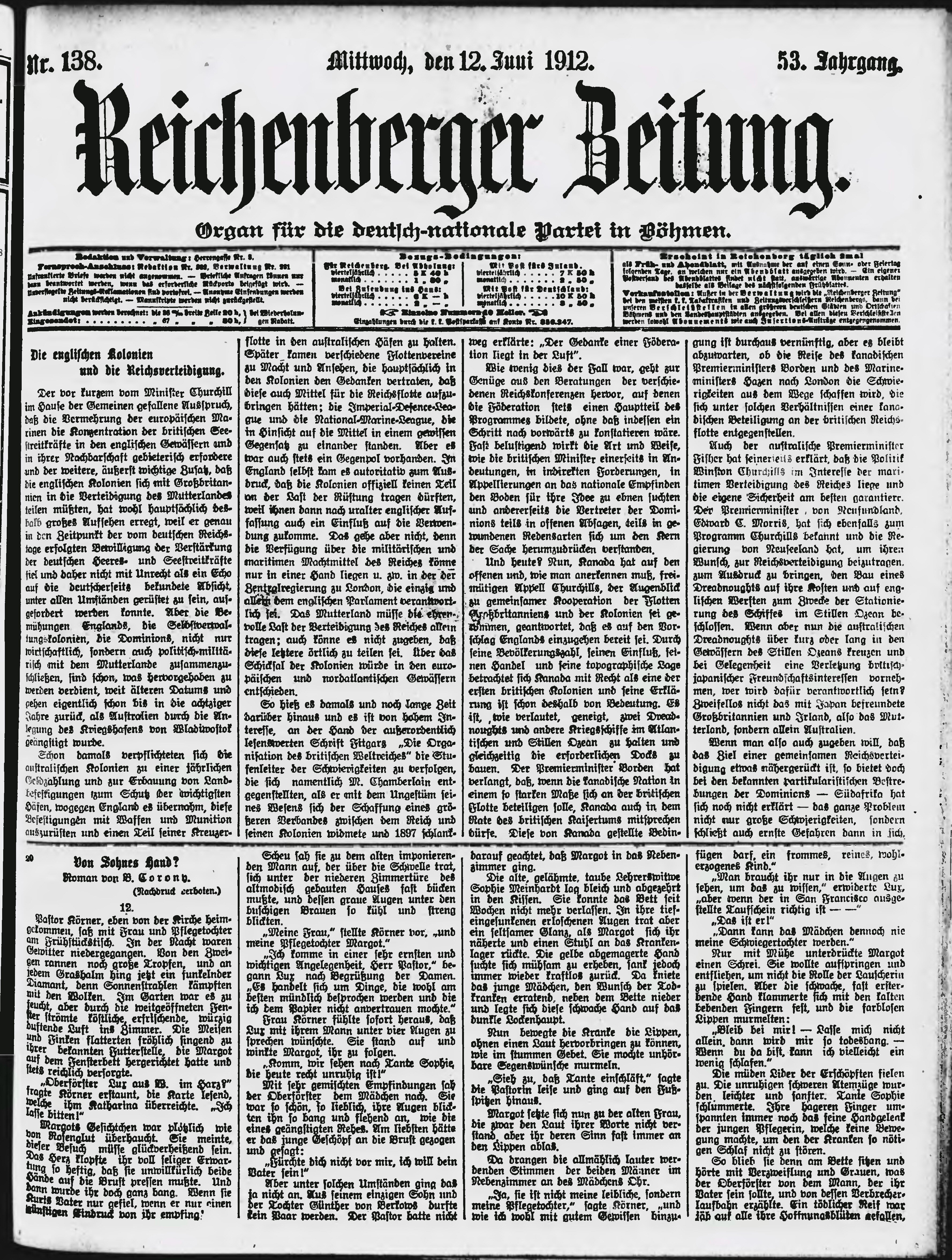 * Datum vydání výtisku: 12.6.1912 Číslo výtisku: 138 Poznámky k výtisku: ranní vydání;