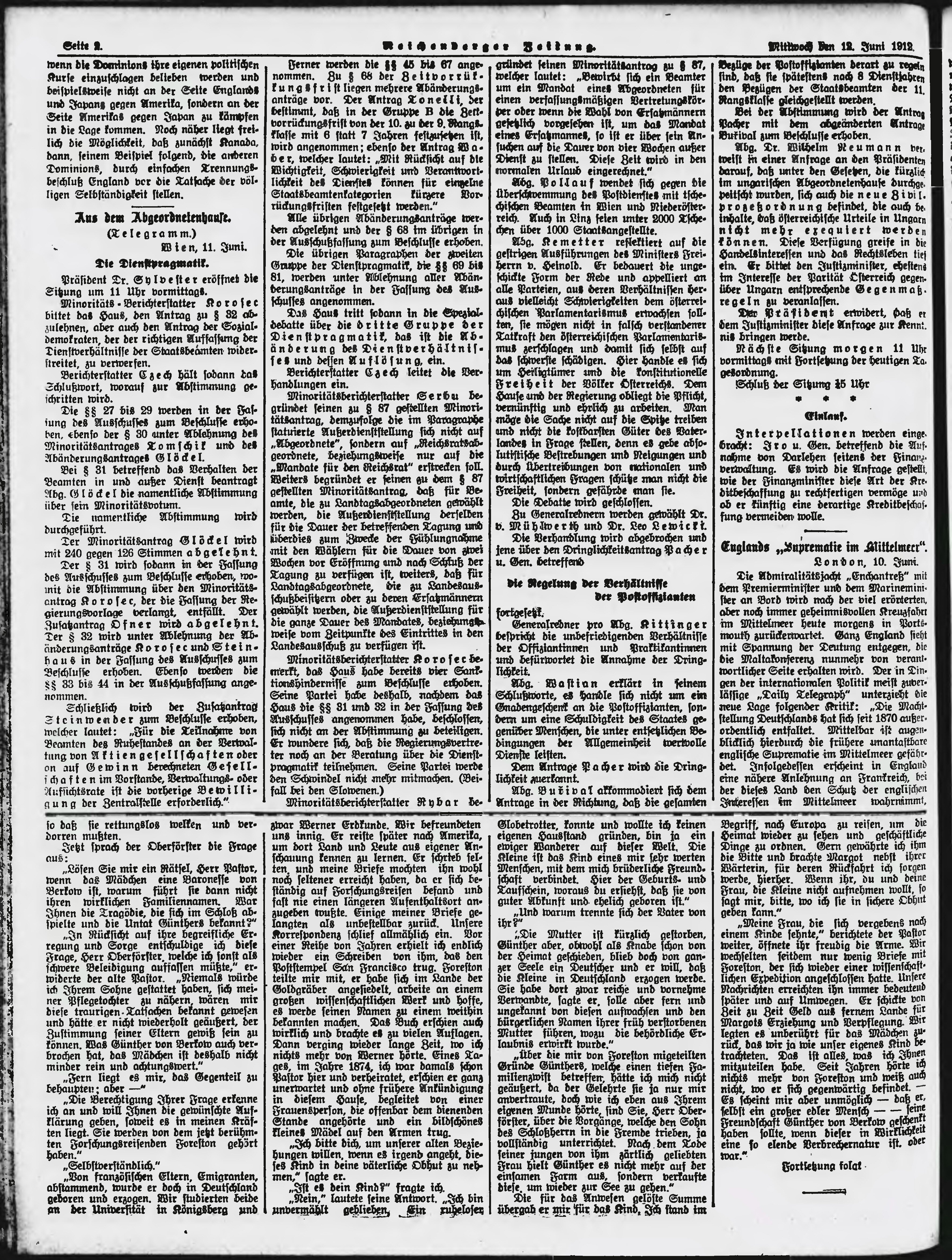 * Datum vydání výtisku: 12.6.1912 Číslo výtisku: 138 Poznámky k výtisku: ranní vydání;