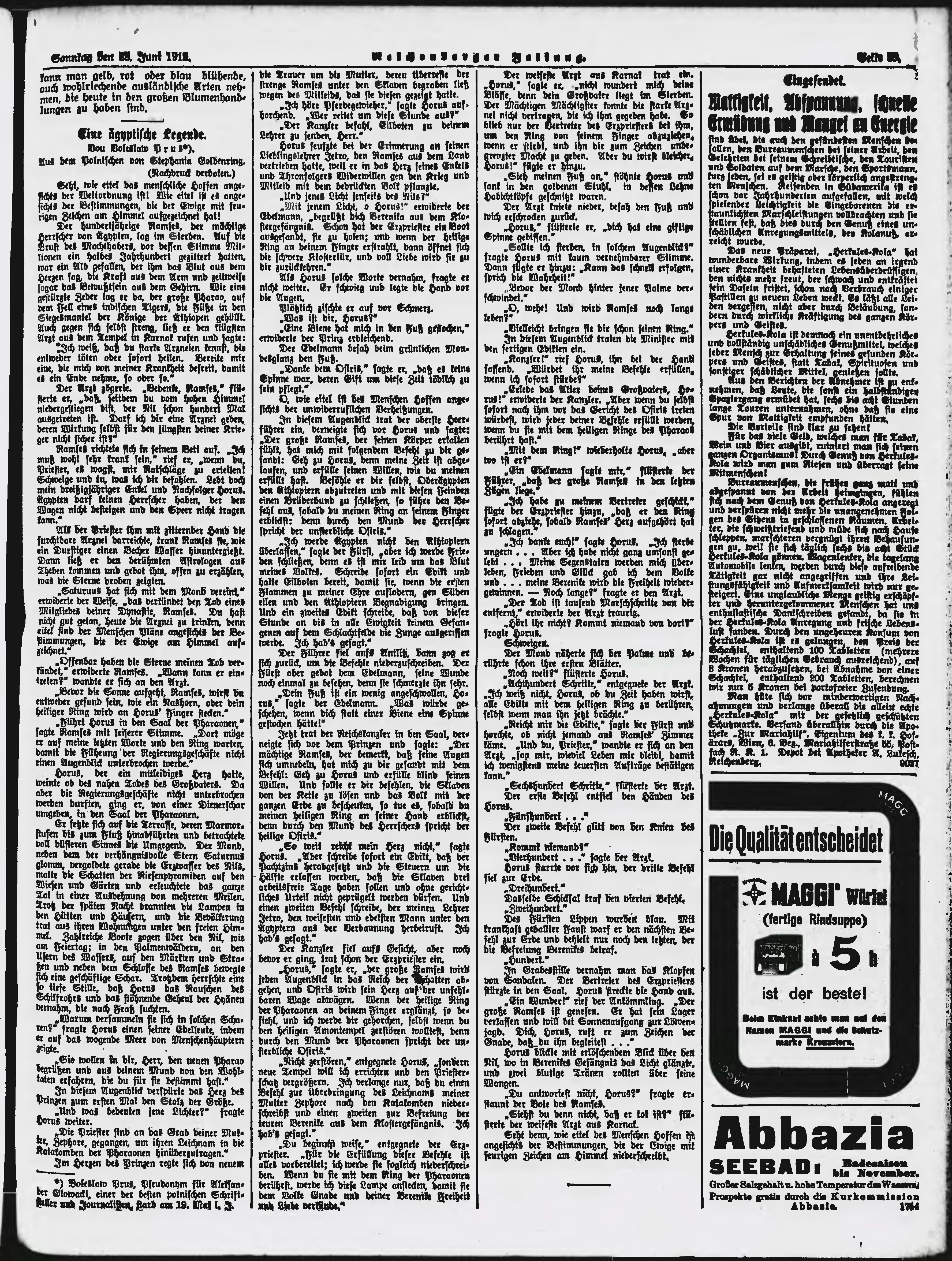 * Datum vydání výtisku: 23.6.1912 Číslo výtisku: 148 Poznámky k výtisku: ranní vydání;