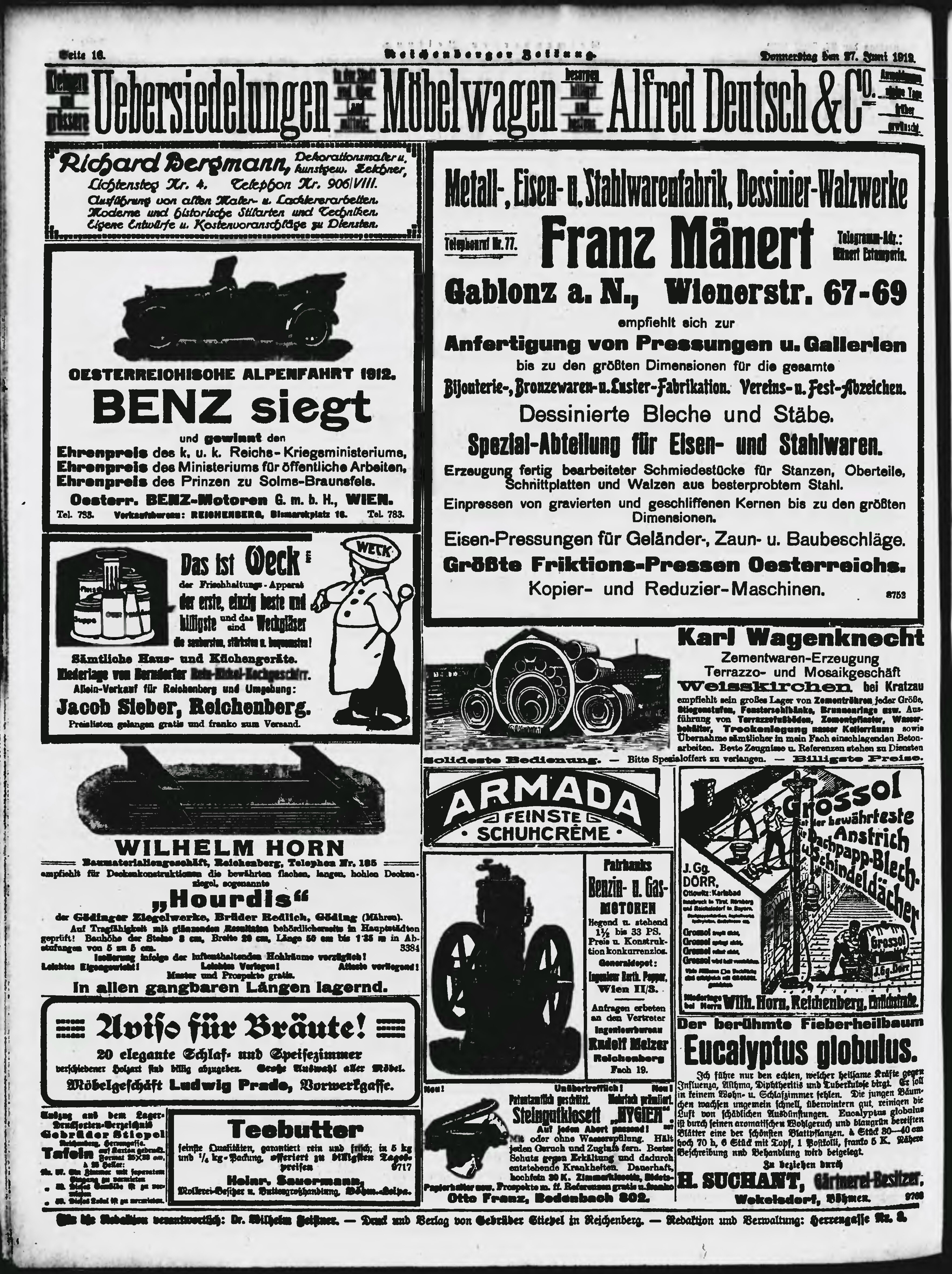* Datum vydání výtisku: 27.6.1912 Číslo výtisku: 151 Poznámky k výtisku: ranní vydání;