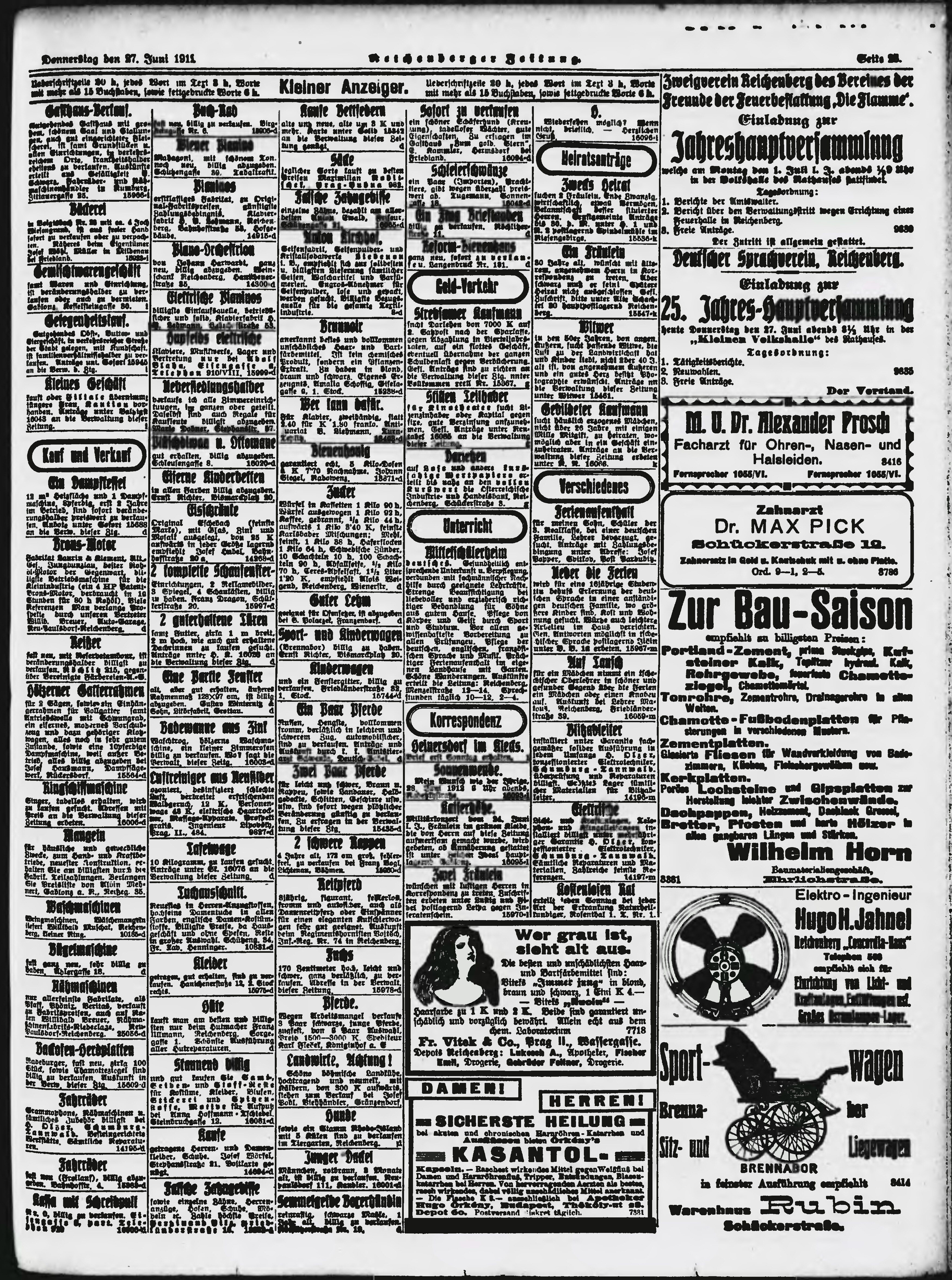 * Datum vydání výtisku: 27.6.1912 Číslo výtisku: 151 Poznámky k výtisku: ranní vydání;
