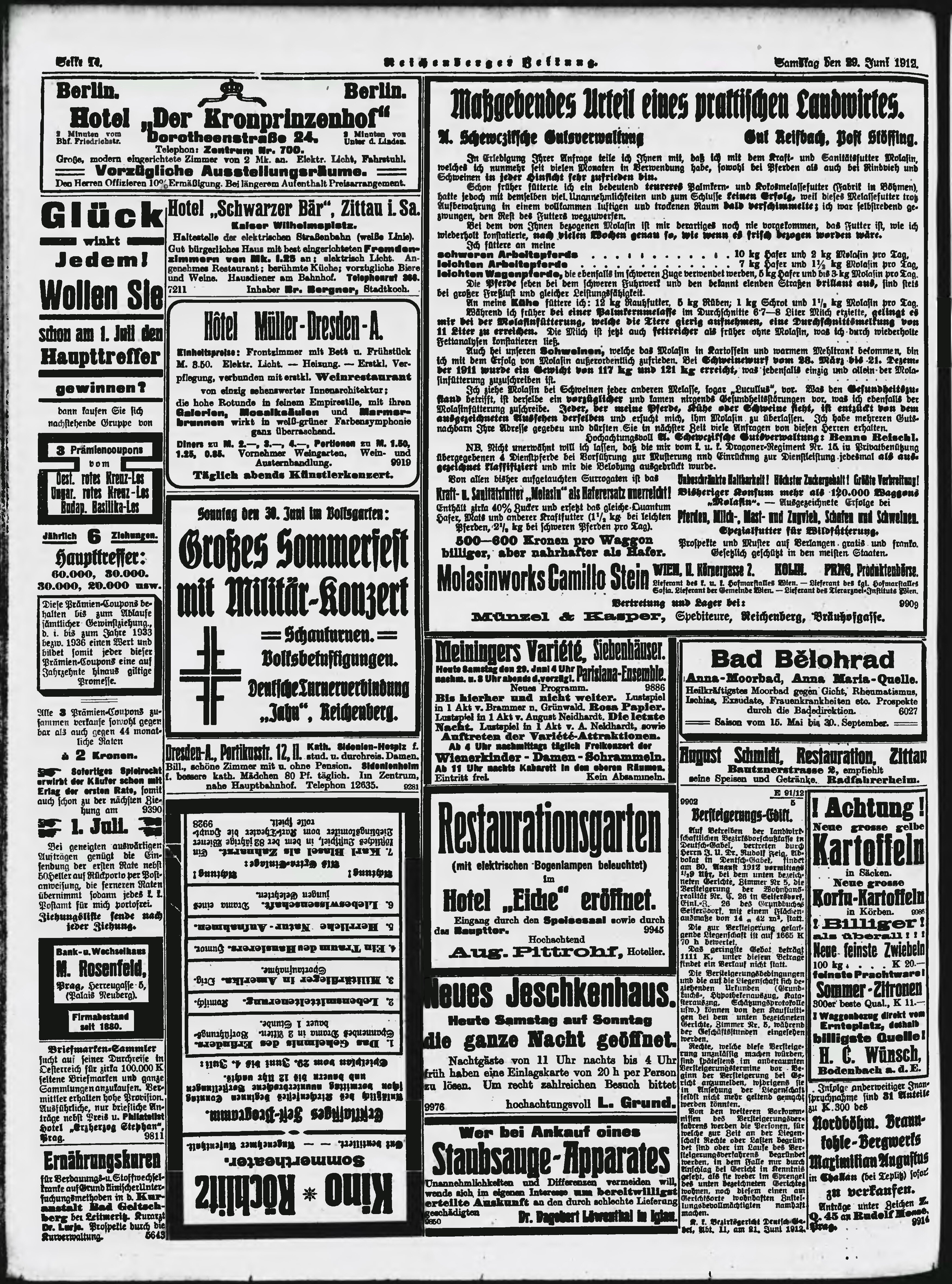 * Datum vydání výtisku: 29.6.1912 Číslo výtisku: 153 Poznámky k výtisku: ranní vydání;