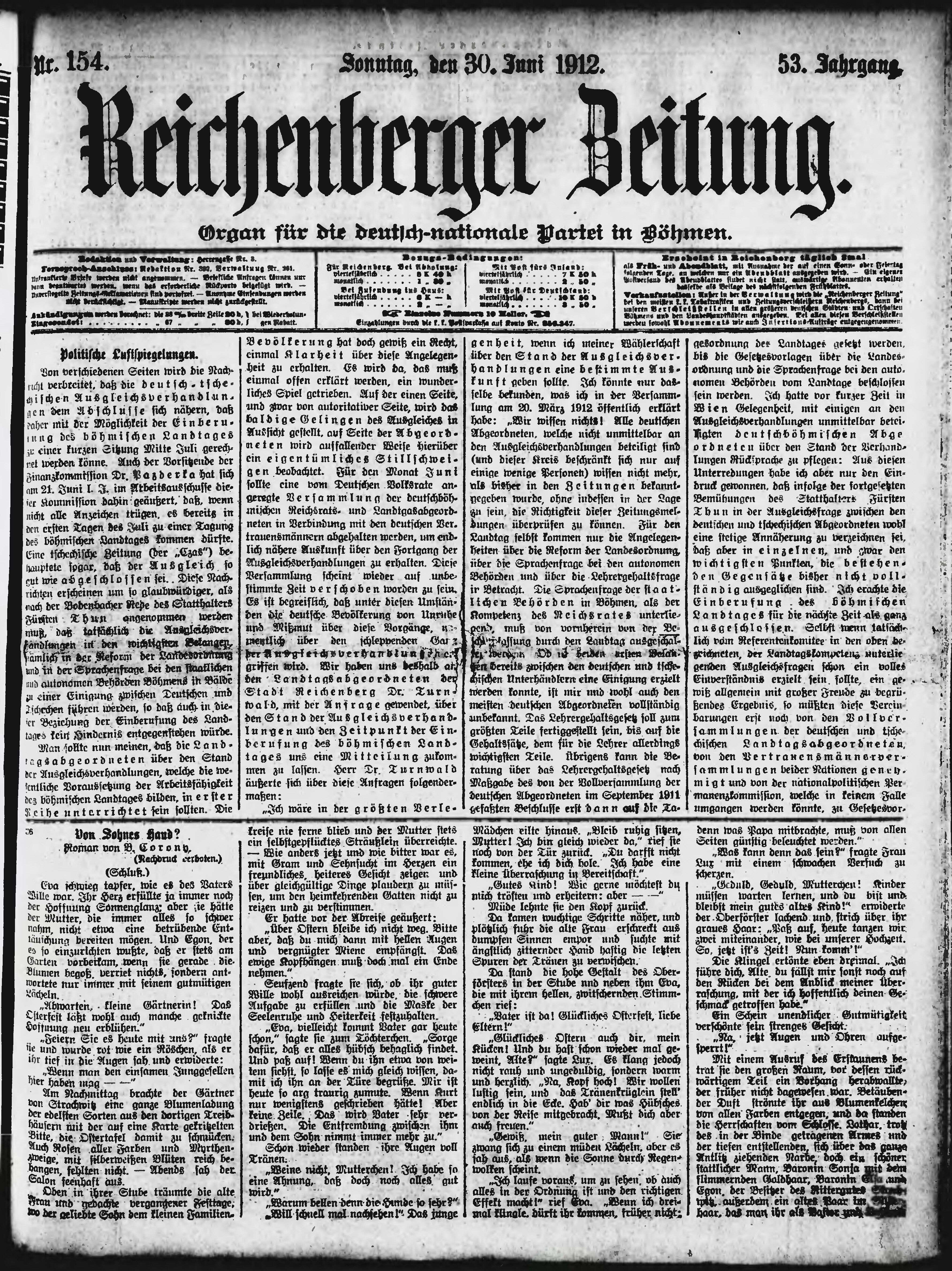 * Datum vydání výtisku: 30.6.1912 Číslo výtisku: 154 Poznámky k výtisku: ranní vydání;
