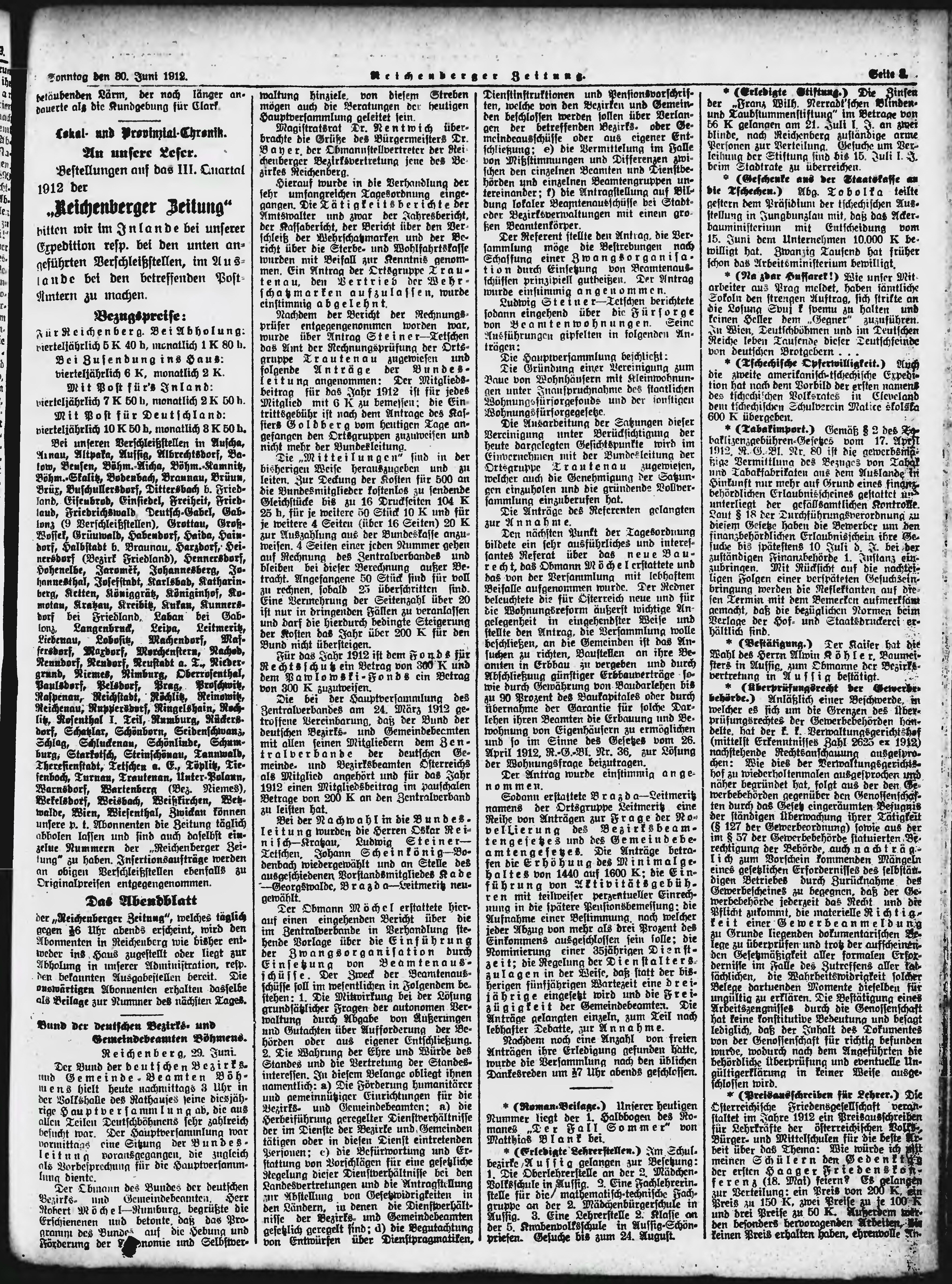 * Datum vydání výtisku: 30.6.1912 Číslo výtisku: 154 Poznámky k výtisku: ranní vydání;