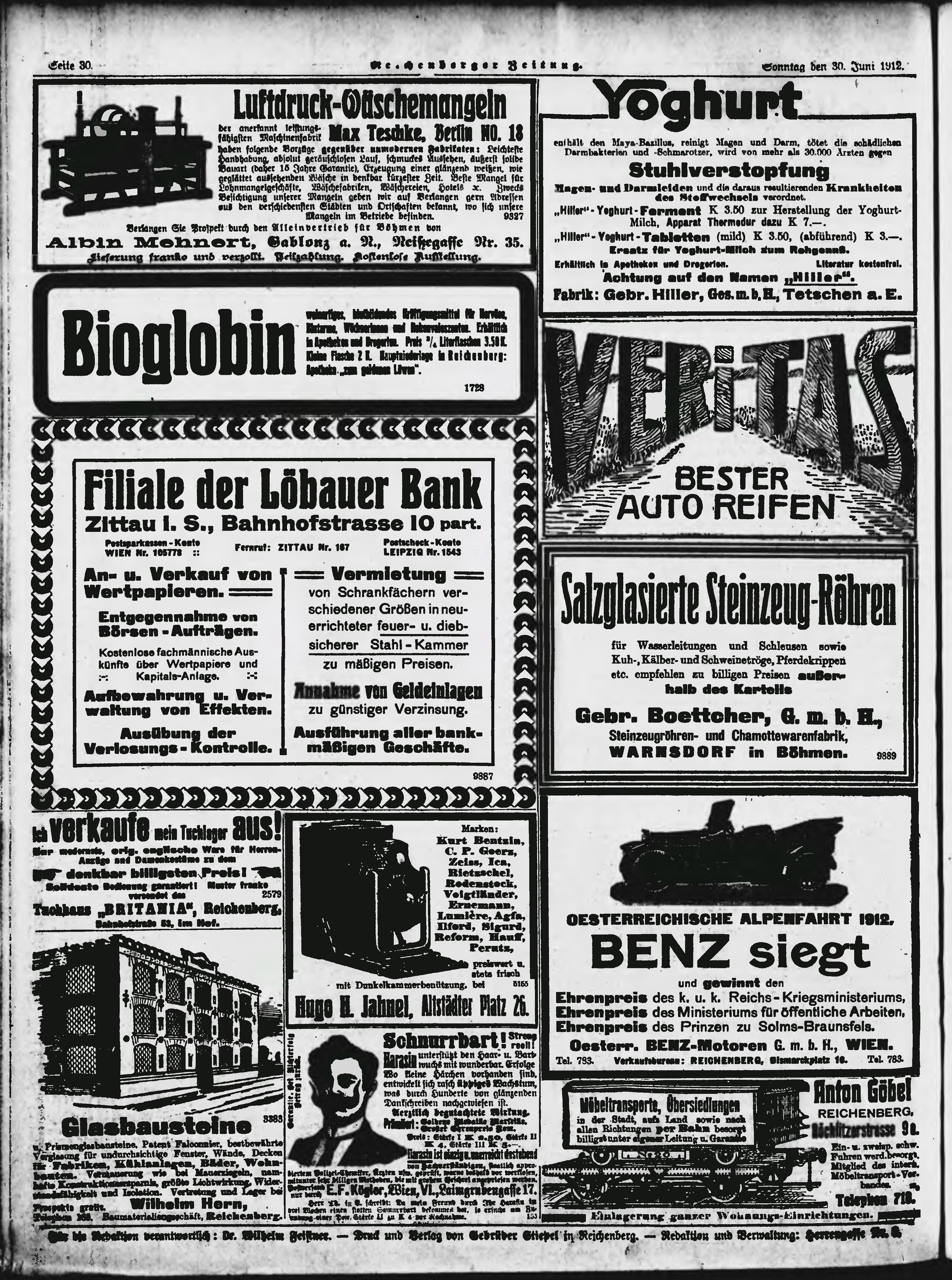 * Datum vydání výtisku: 30.6.1912 Číslo výtisku: 154 Poznámky k výtisku: ranní vydání;
