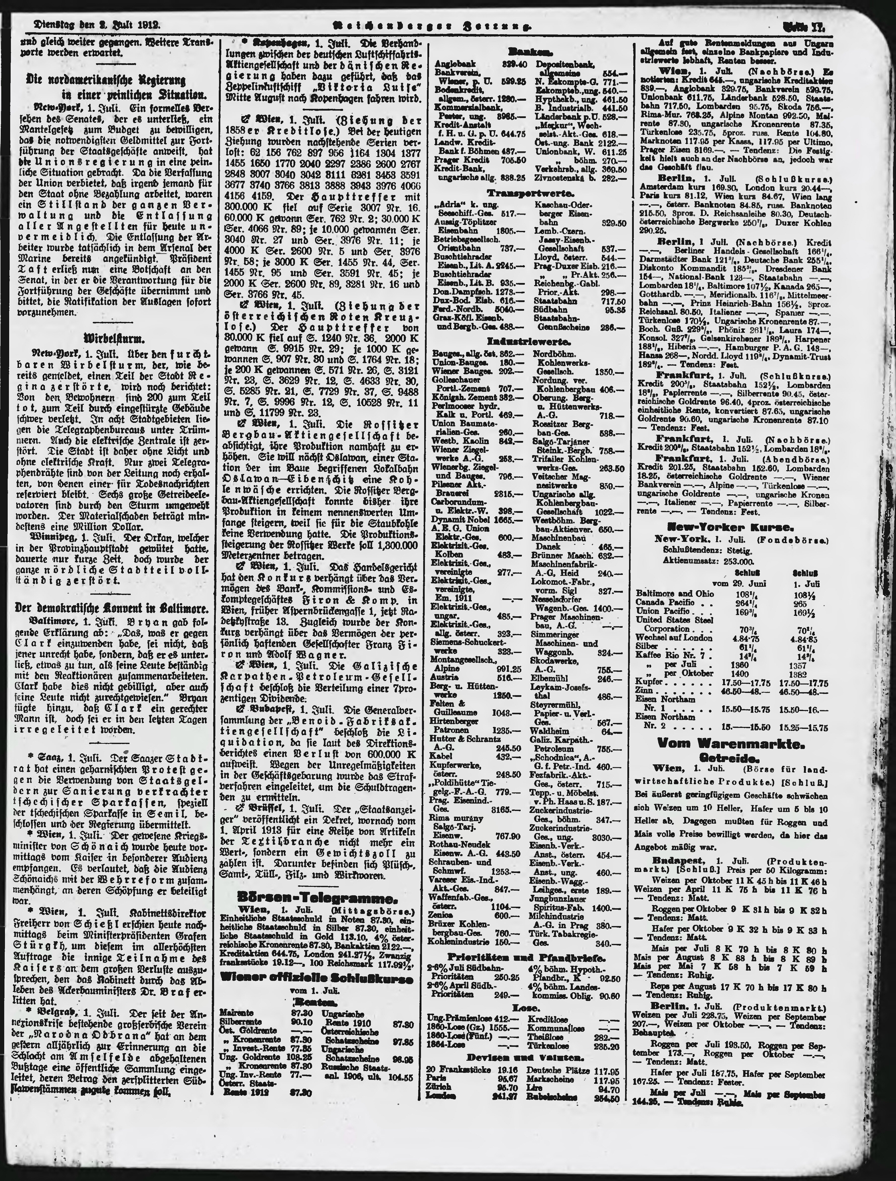* Datum vydání výtisku: 2.7.1912 Číslo výtisku: 155 Poznámky k výtisku: ranní vydání;