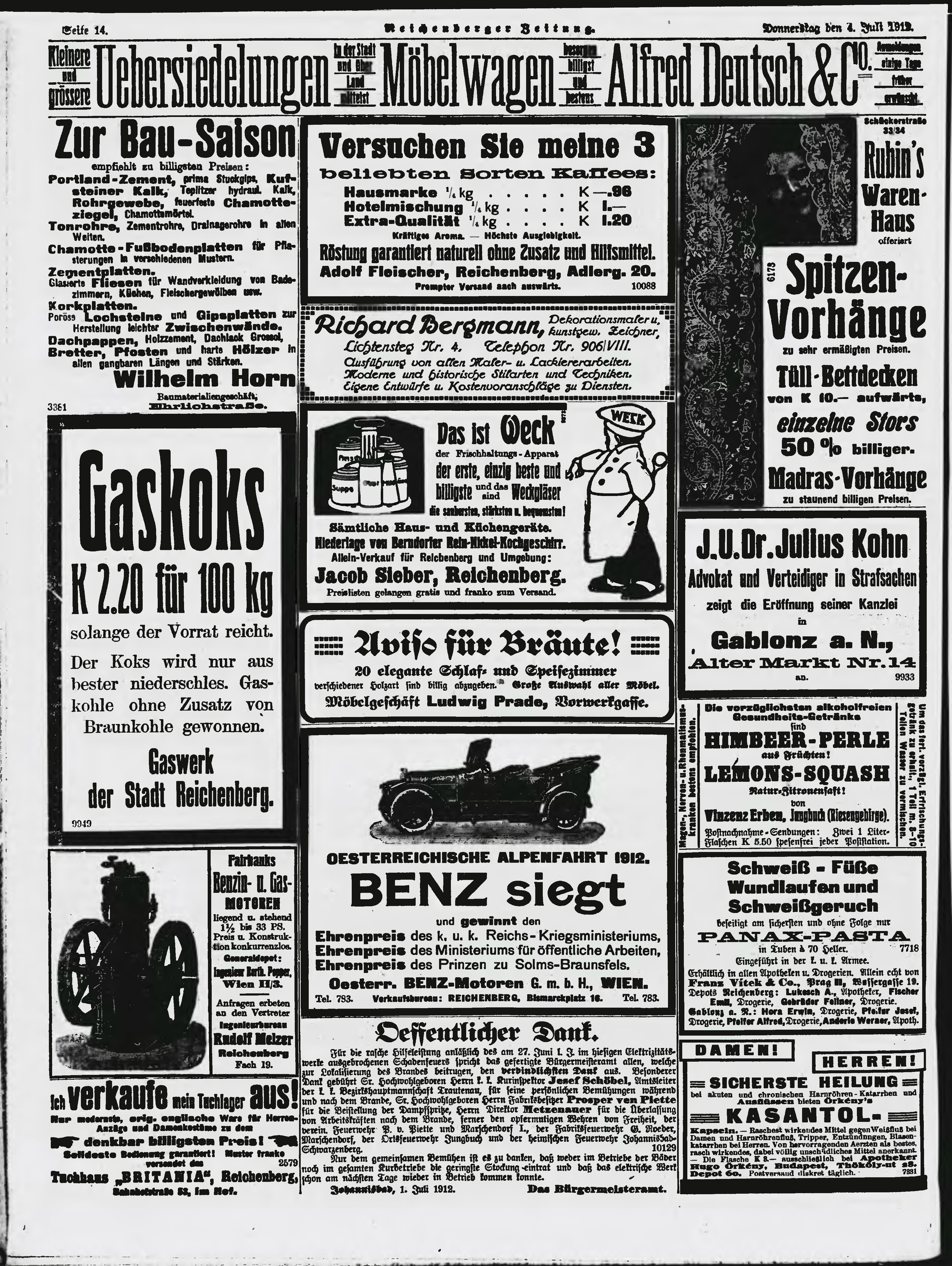* Datum vydání výtisku: 4.7.1912 Číslo výtisku: 157 Poznámky k výtisku: ranní vydání;