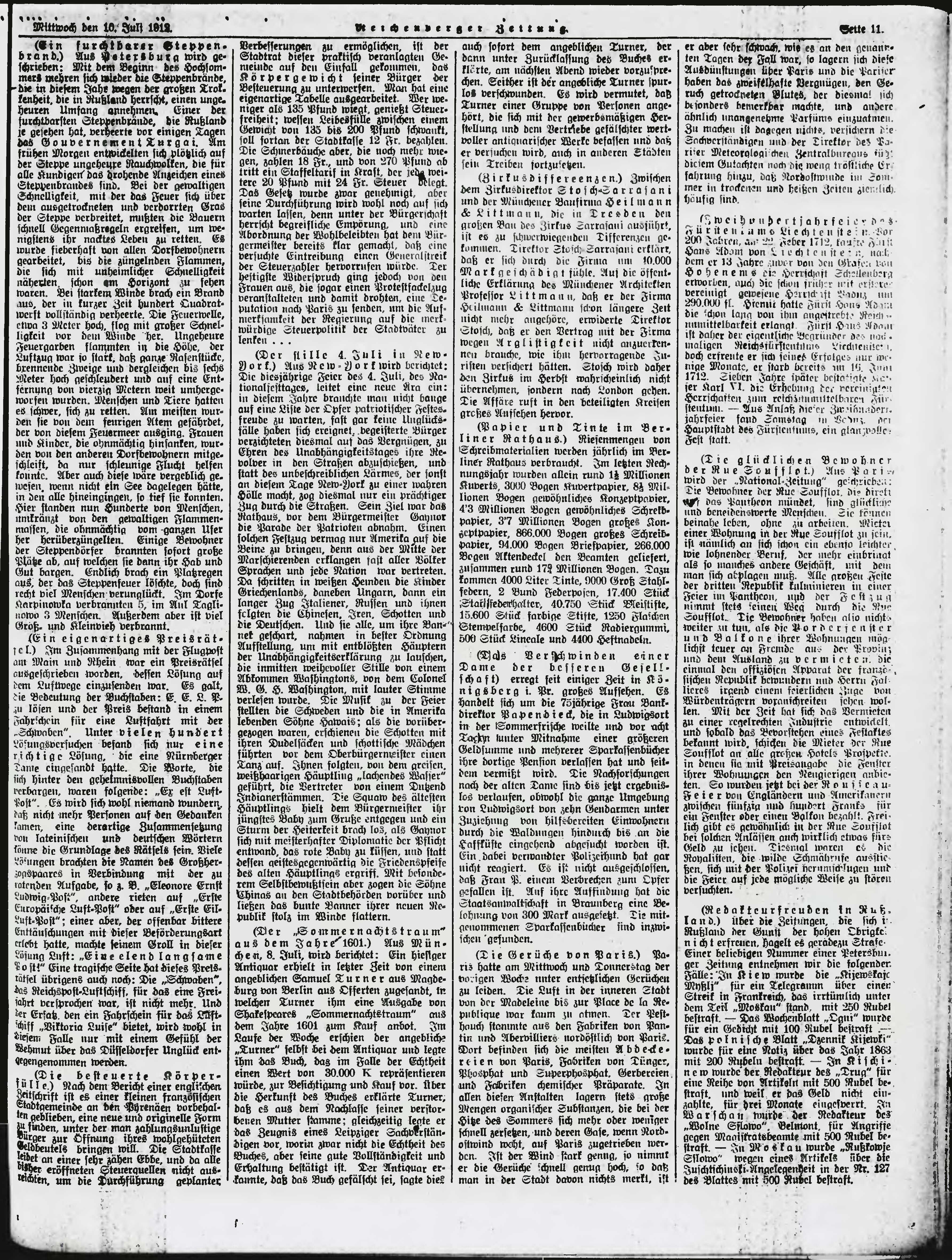 * Datum vydání výtisku: 10.7.1912 Číslo výtisku: 162 Poznámky k výtisku: ranní vydání;