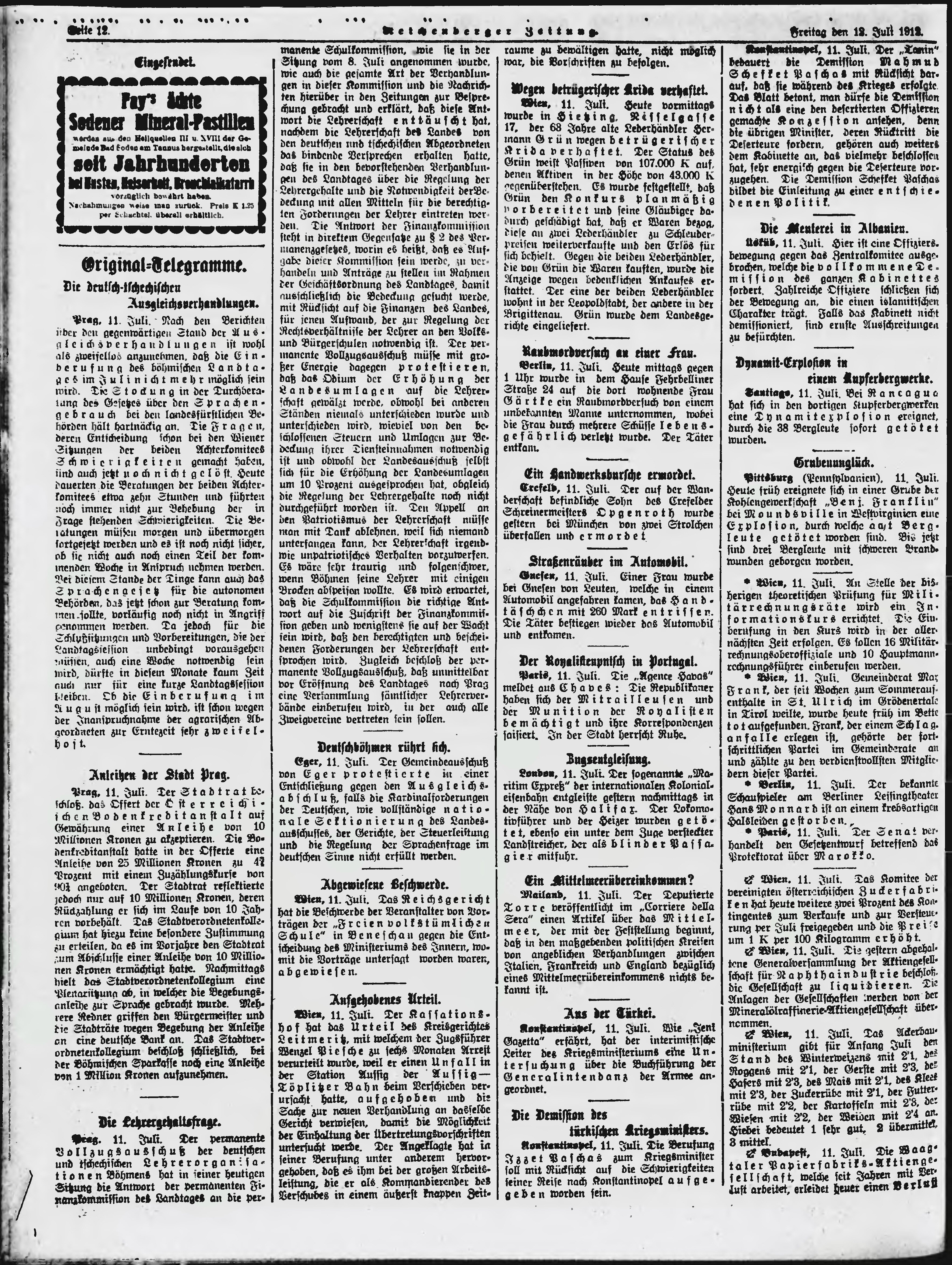 * Datum vydání výtisku: 12.7.1912 Číslo výtisku: 164 Poznámky k výtisku: ranní vydání;