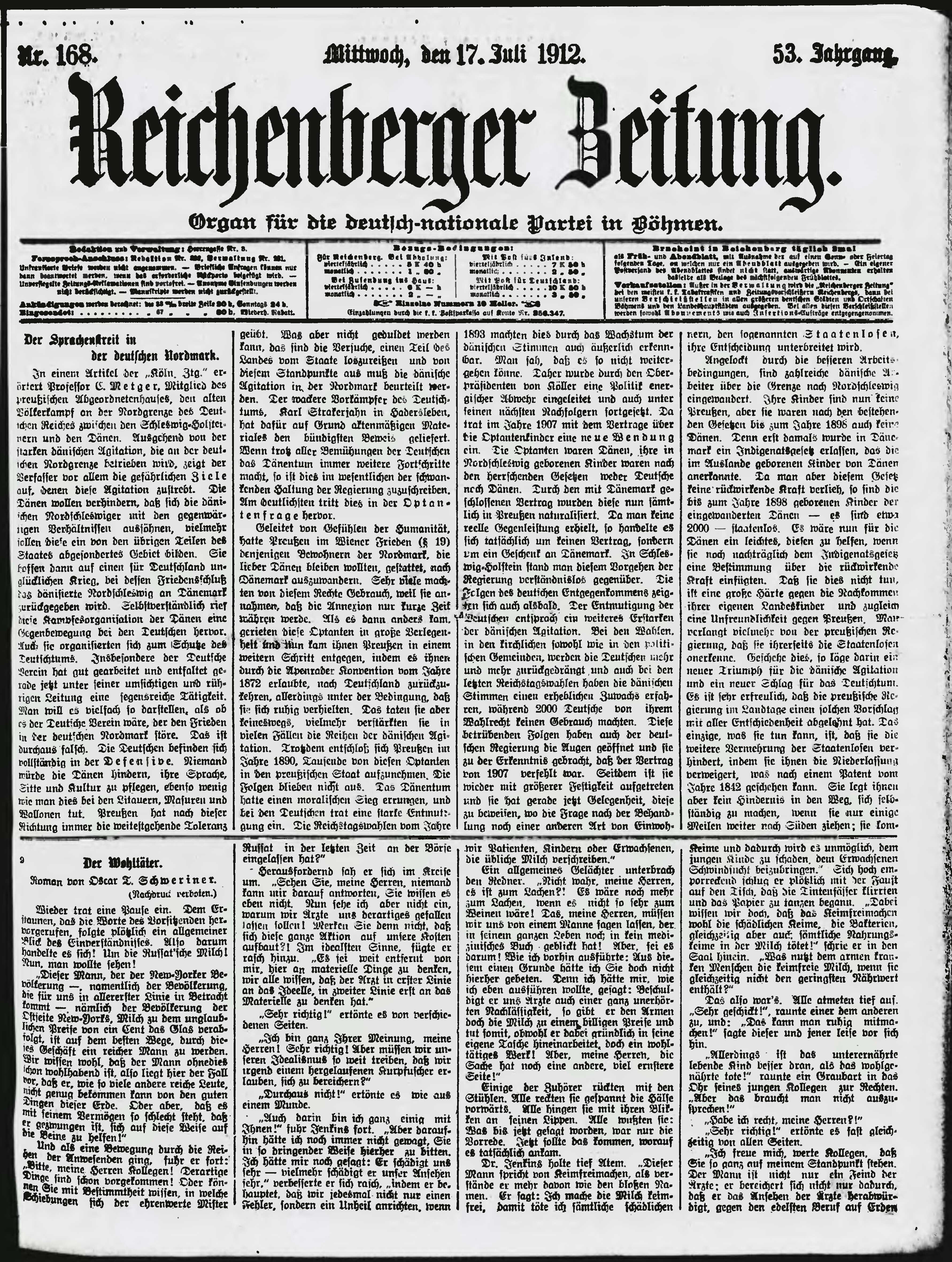 * Datum vydání výtisku: 17.7.1912 Číslo výtisku: 168 Poznámky k výtisku: ranní vydání;