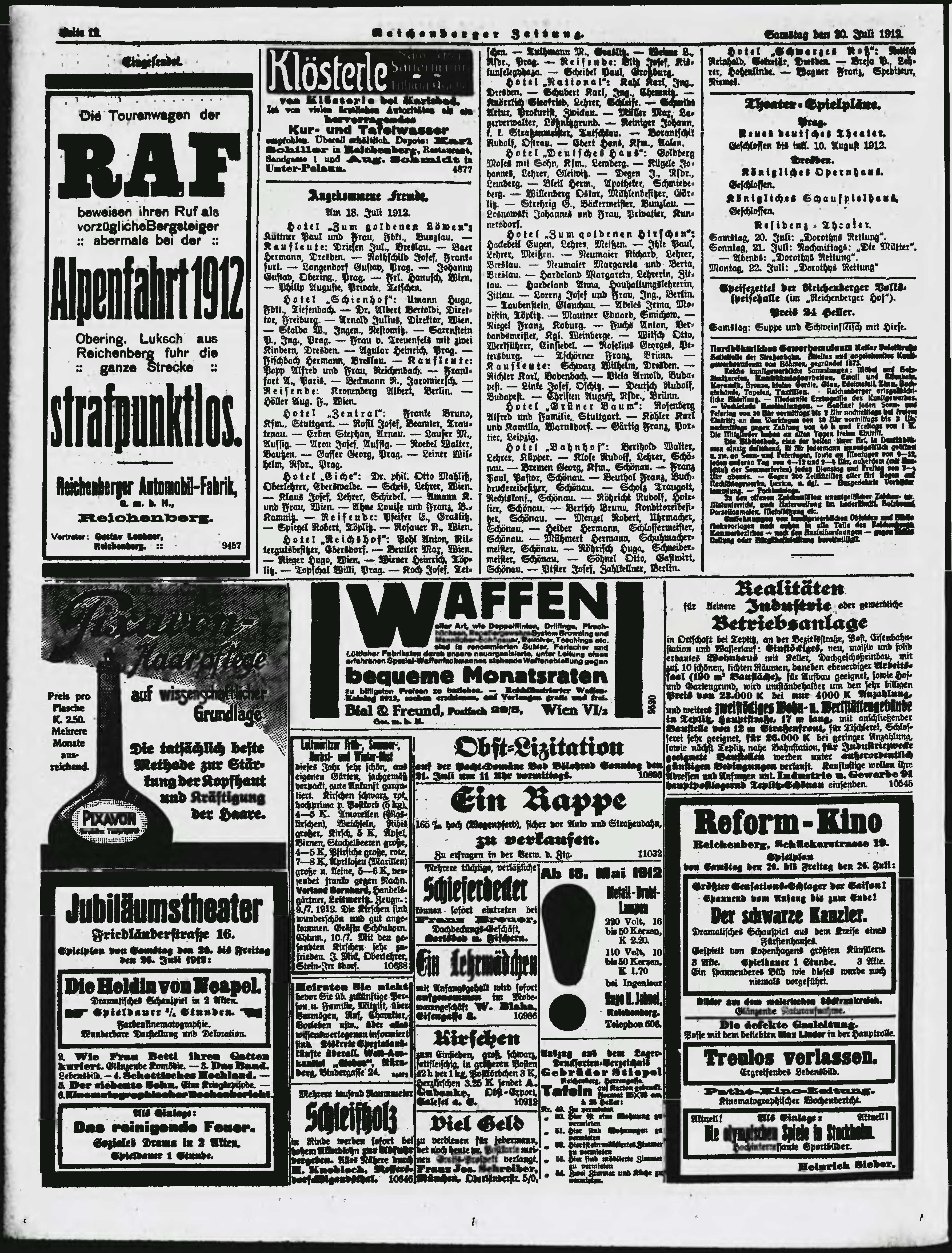 * Datum vydání výtisku: 20.7.1912 Číslo výtisku: 171 Poznámky k výtisku: ranní vydání;