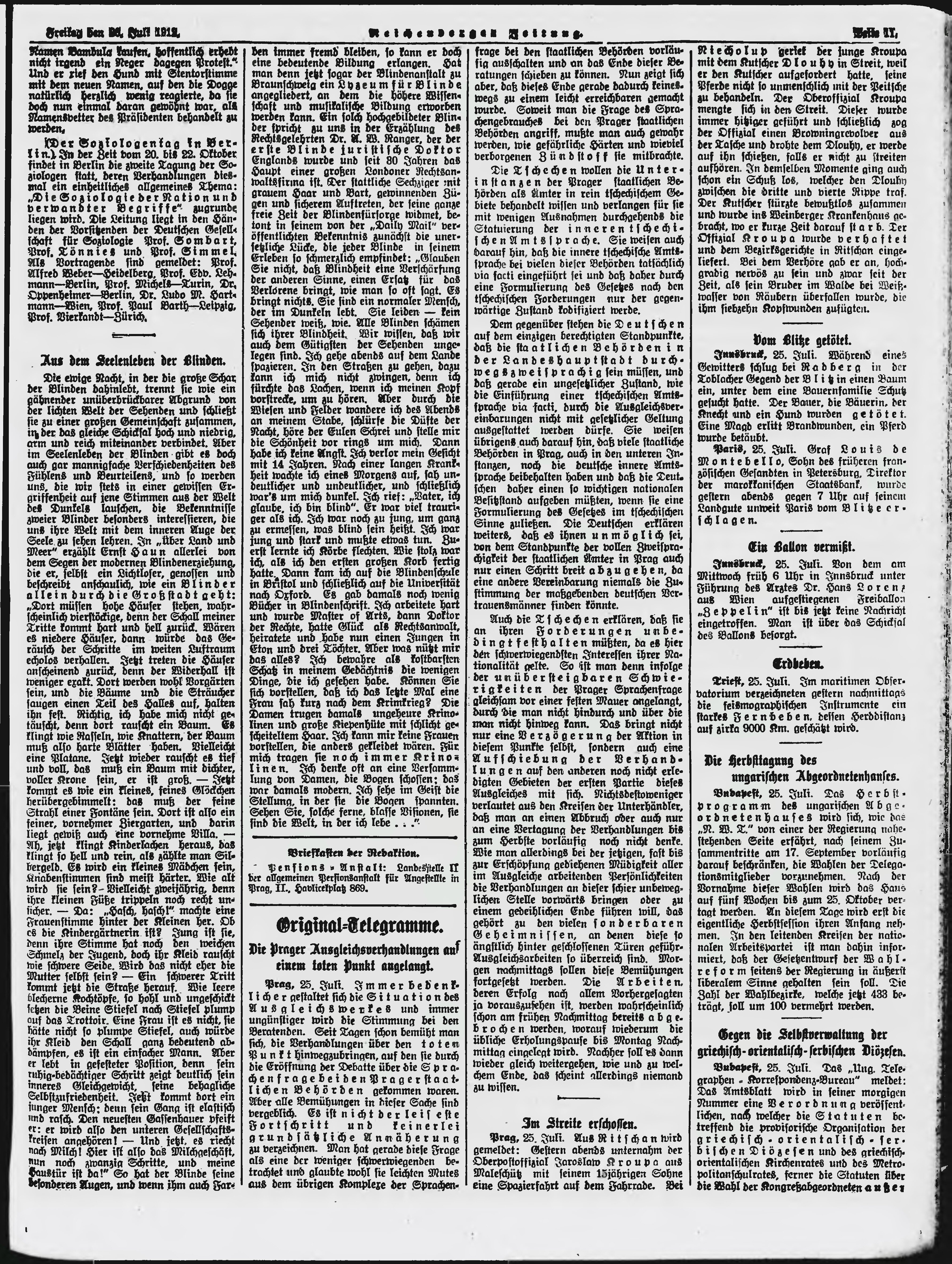 * Datum vydání výtisku: 26.7.1912 Číslo výtisku: 176 Poznámky k výtisku: ranní vydání;