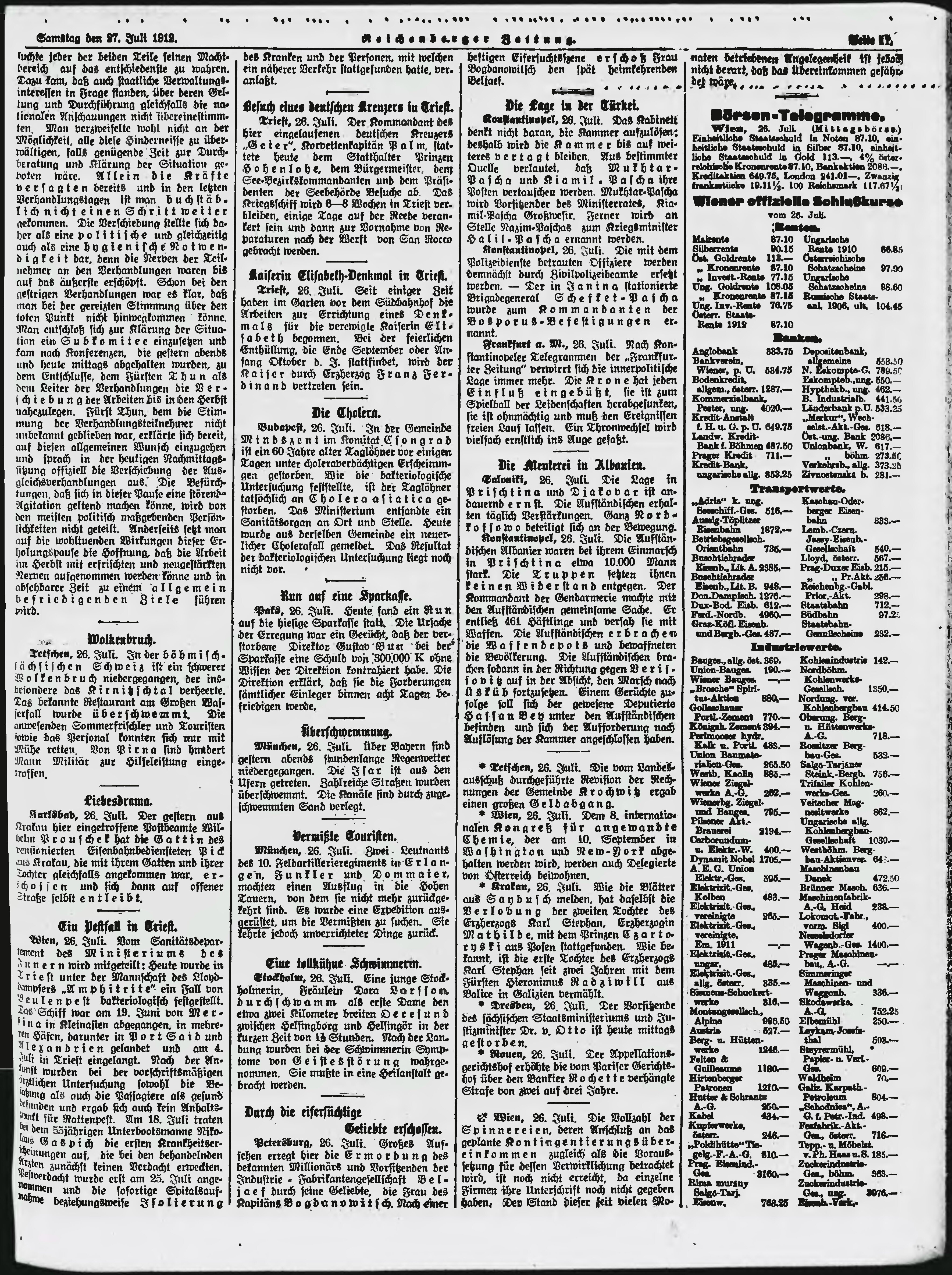 * Datum vydání výtisku: 27.7.1912 Číslo výtisku: 177 Poznámky k výtisku: ranní vydání;