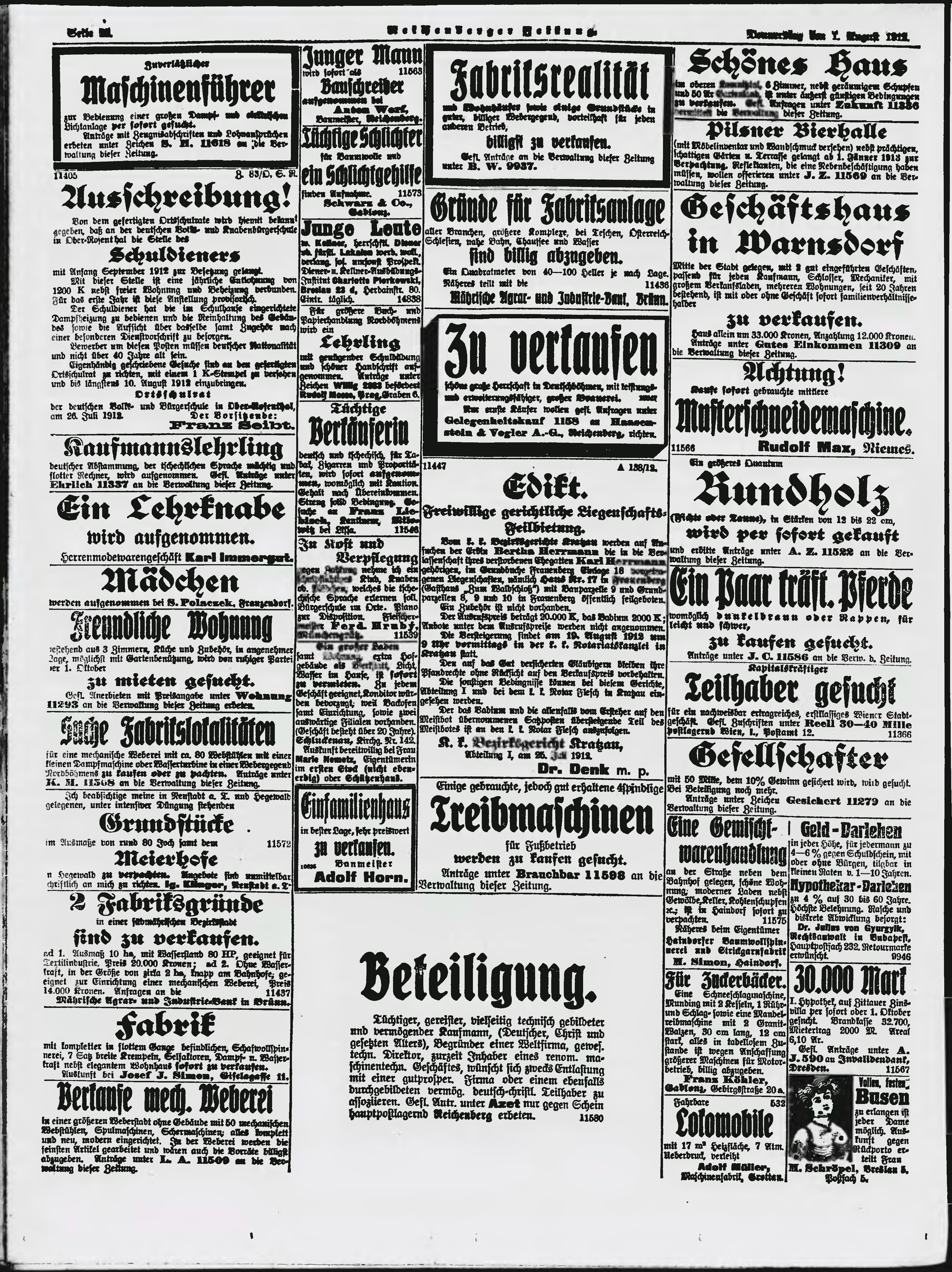 * Datum vydání výtisku: 1.8.1912 Číslo výtisku: 181 Poznámky k výtisku: ranní vydání;