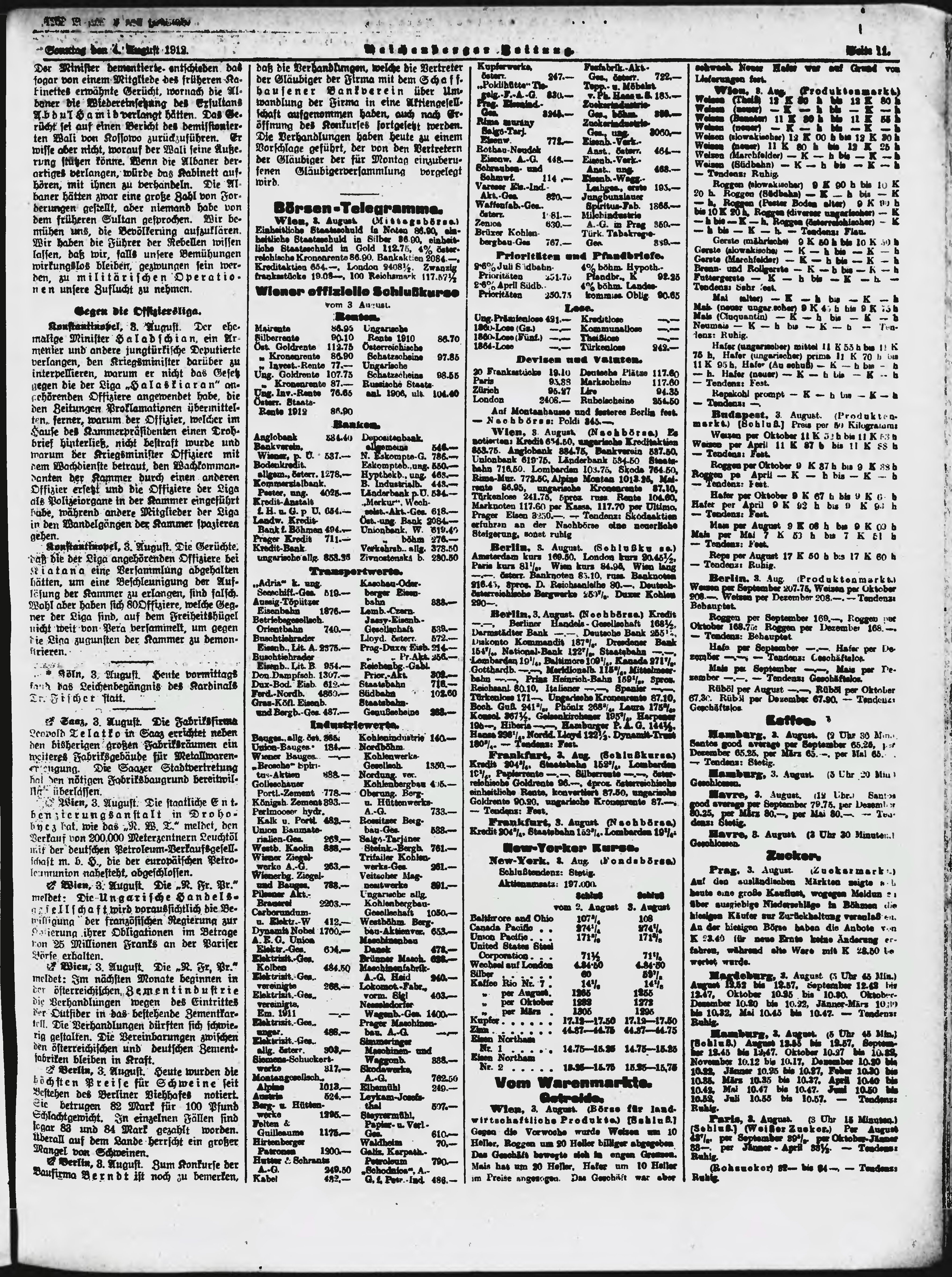 * Datum vydání výtisku: 4.8.1912 Číslo výtisku: 184 Poznámky k výtisku: ranní vydání;