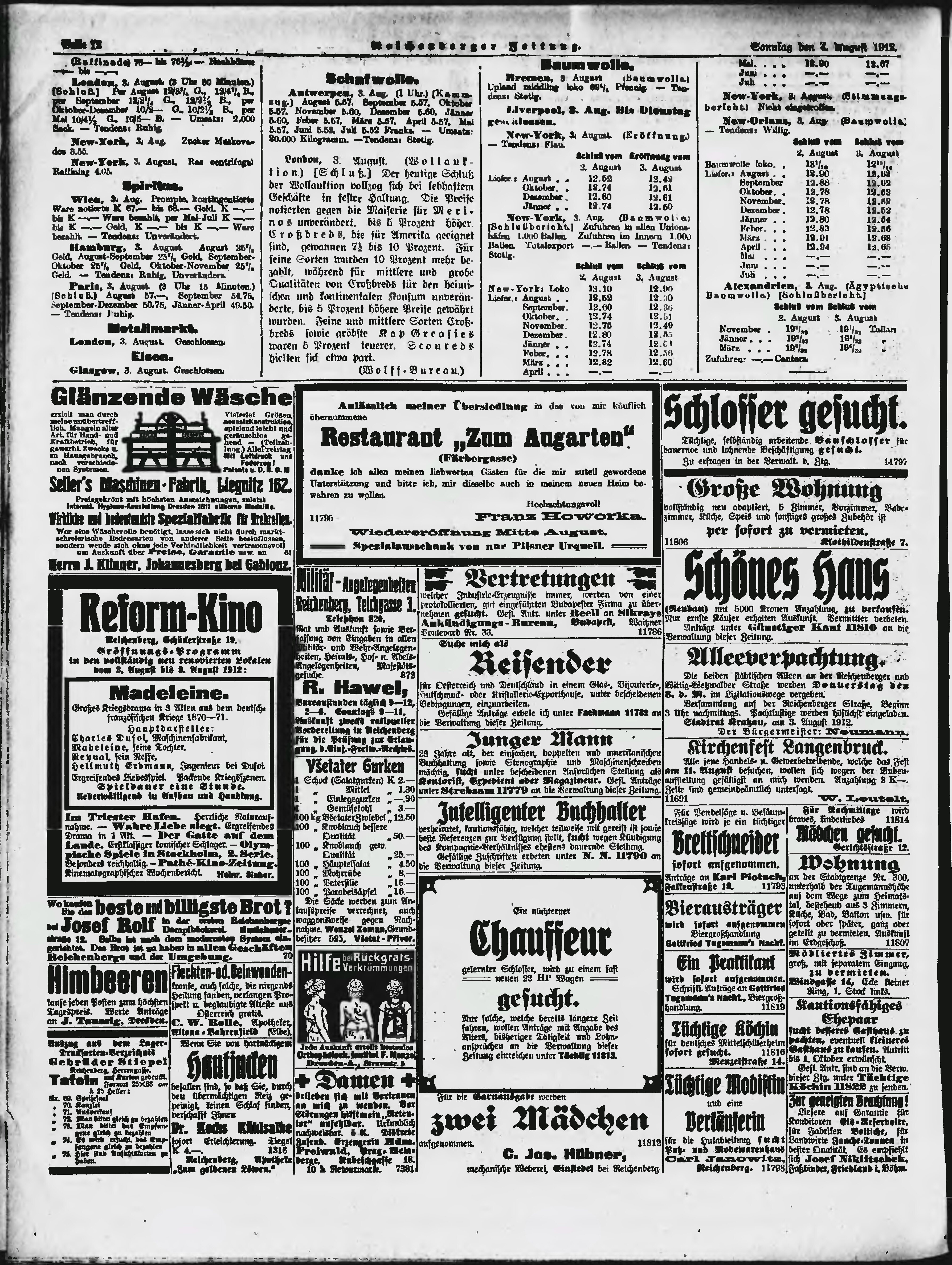 * Datum vydání výtisku: 4.8.1912 Číslo výtisku: 184 Poznámky k výtisku: ranní vydání;