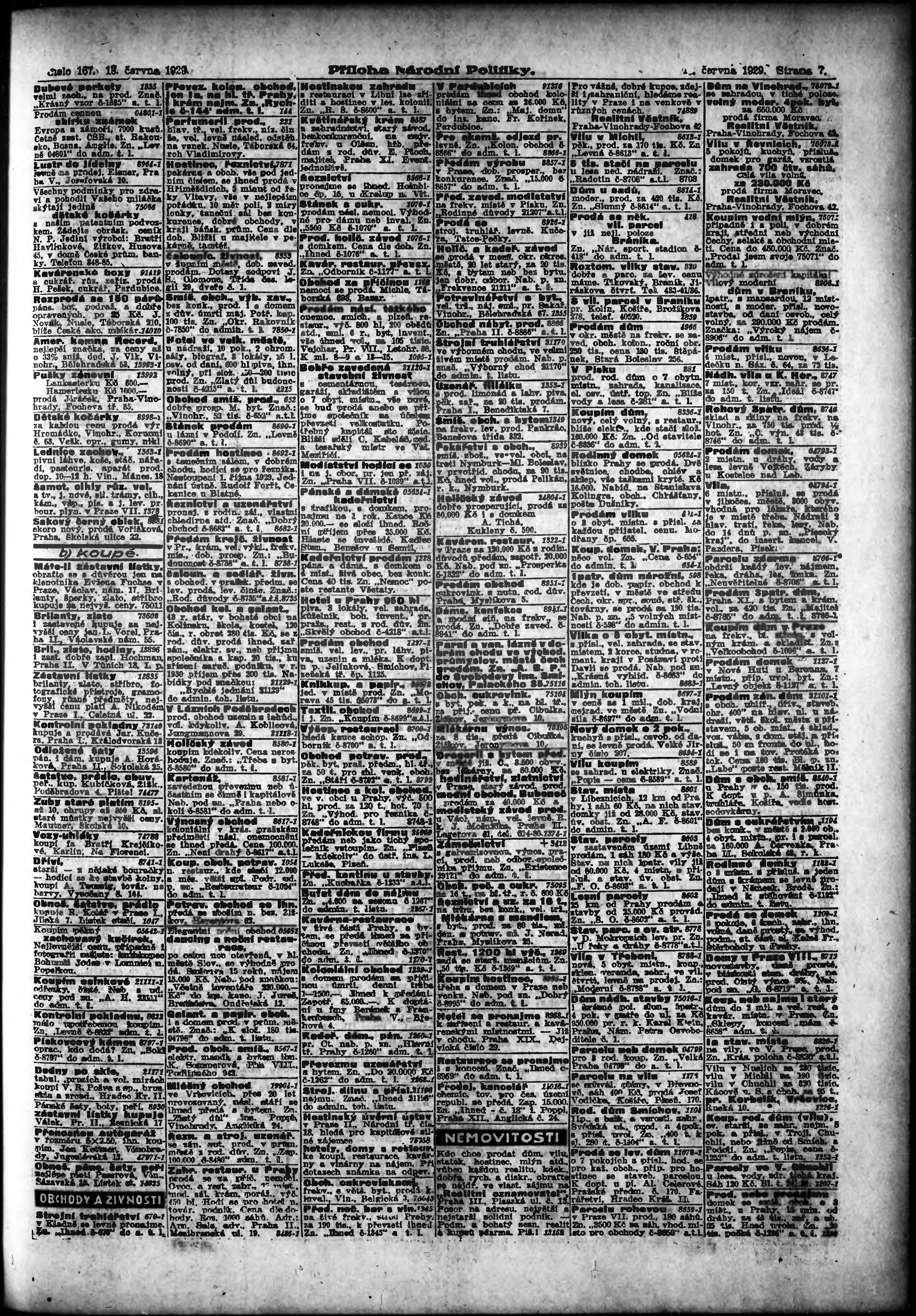 * Datum vydání výtisku: 18.6.1929 Číslo výtisku: 167 Typ výtisku: příloha
