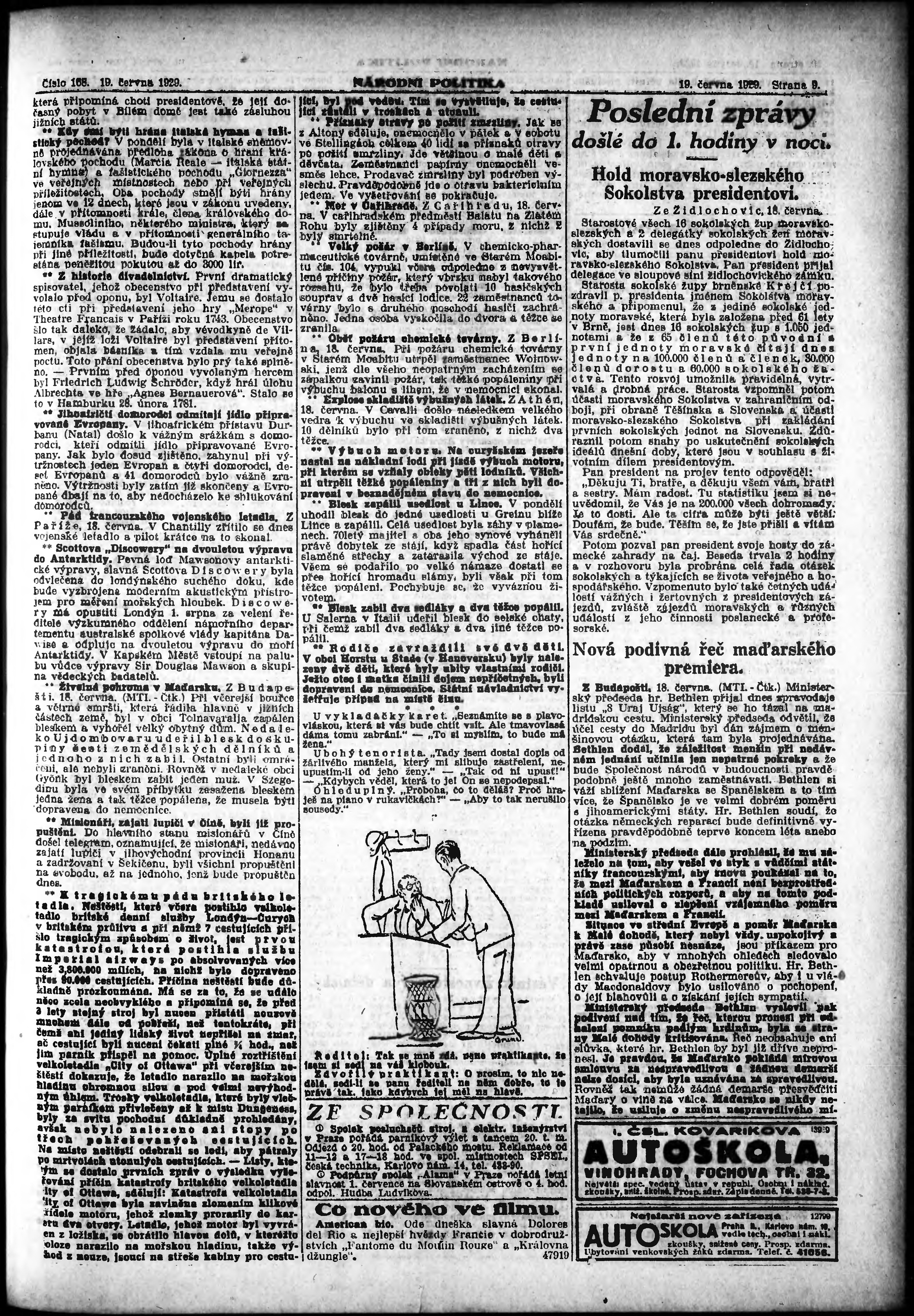 * Datum vydání výtisku: 19.6.1929 Číslo výtisku: 168 Poznámky k výtisku: ranní vydání; vydání pro Prahu;