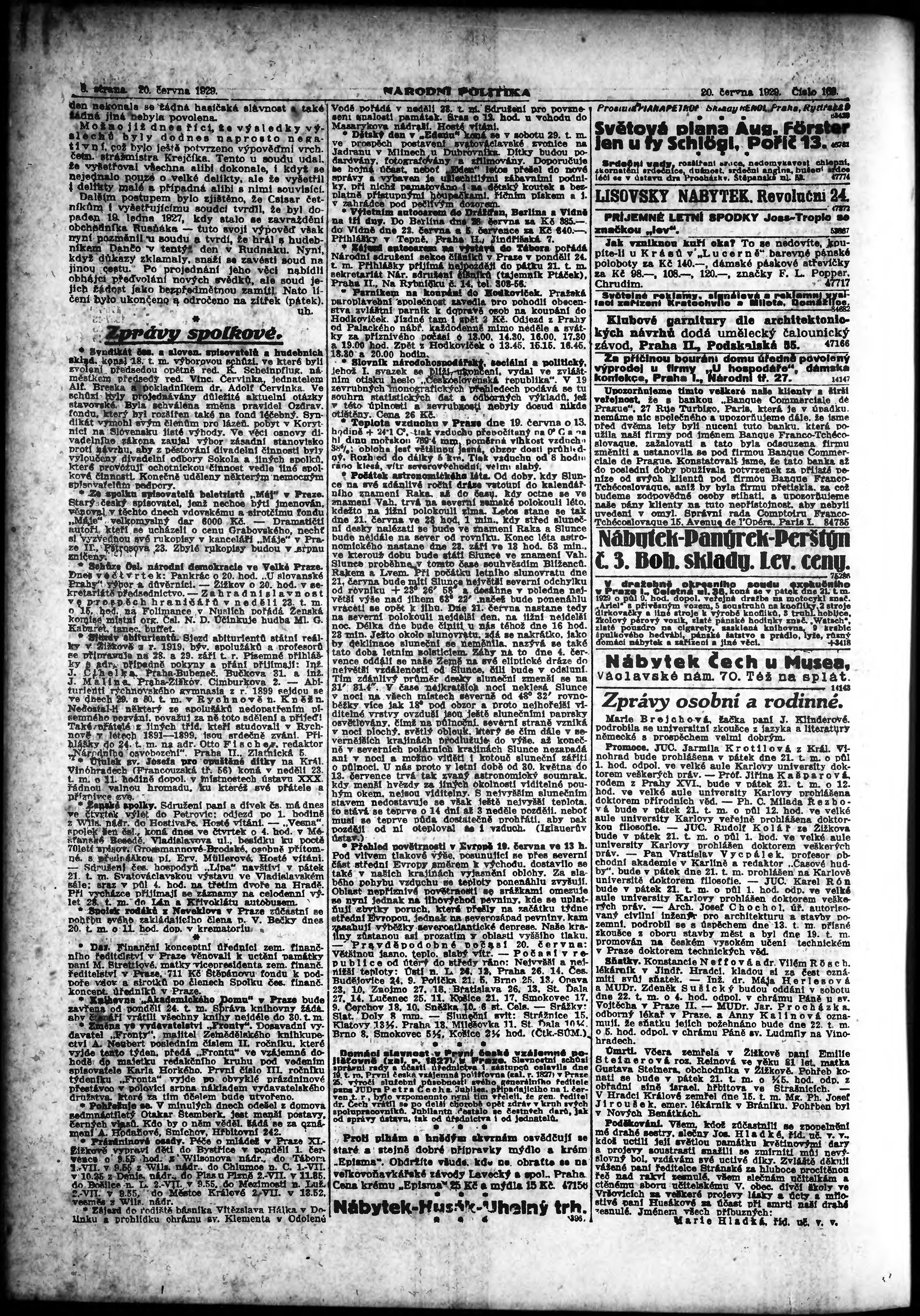 * Datum vydání výtisku: 20.6.1929 Číslo výtisku: 169 Poznámky k výtisku: ranní vydání; vydání pro Prahu;