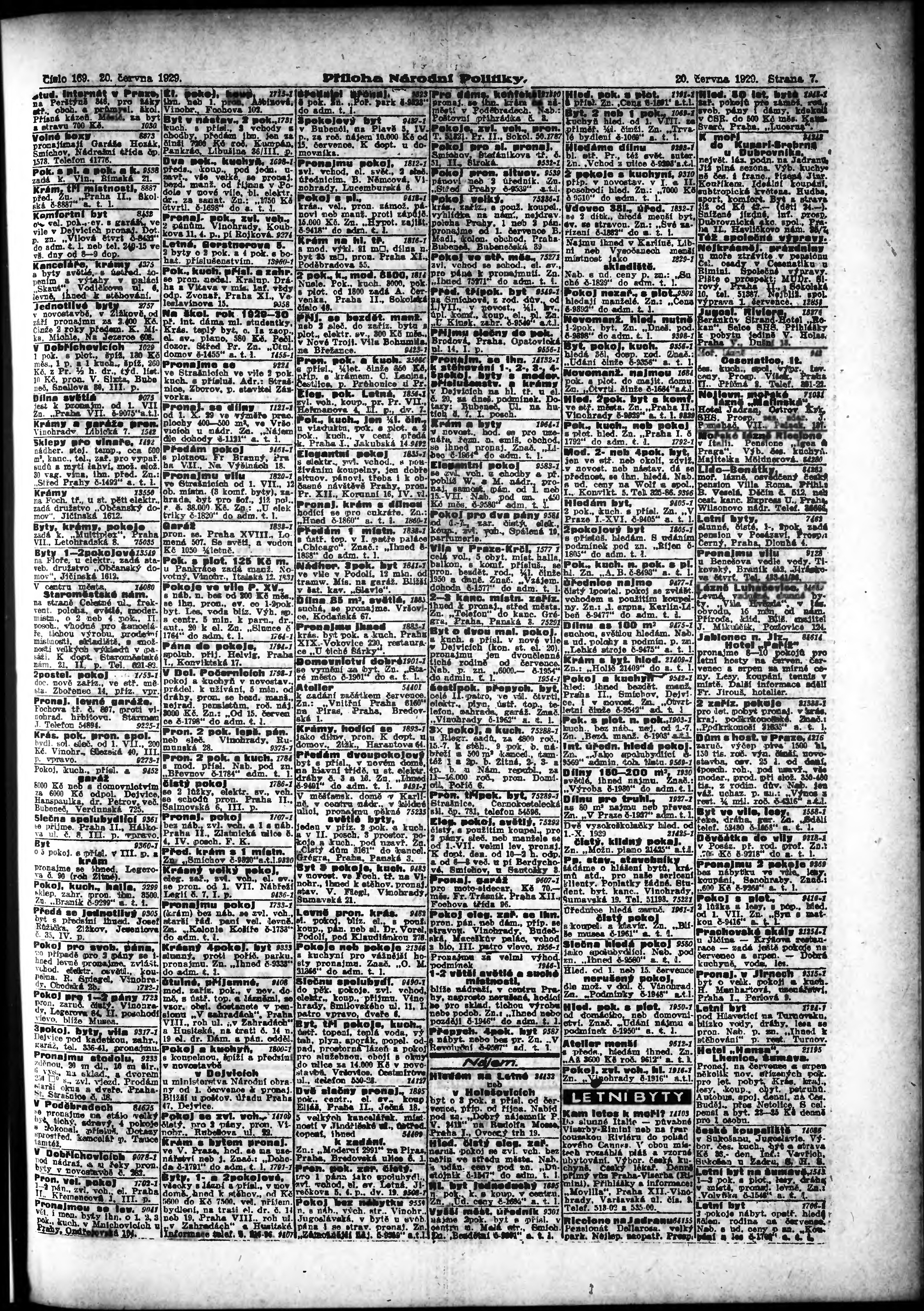 * Datum vydání výtisku: 20.6.1929 Číslo výtisku: 169 Typ výtisku: příloha