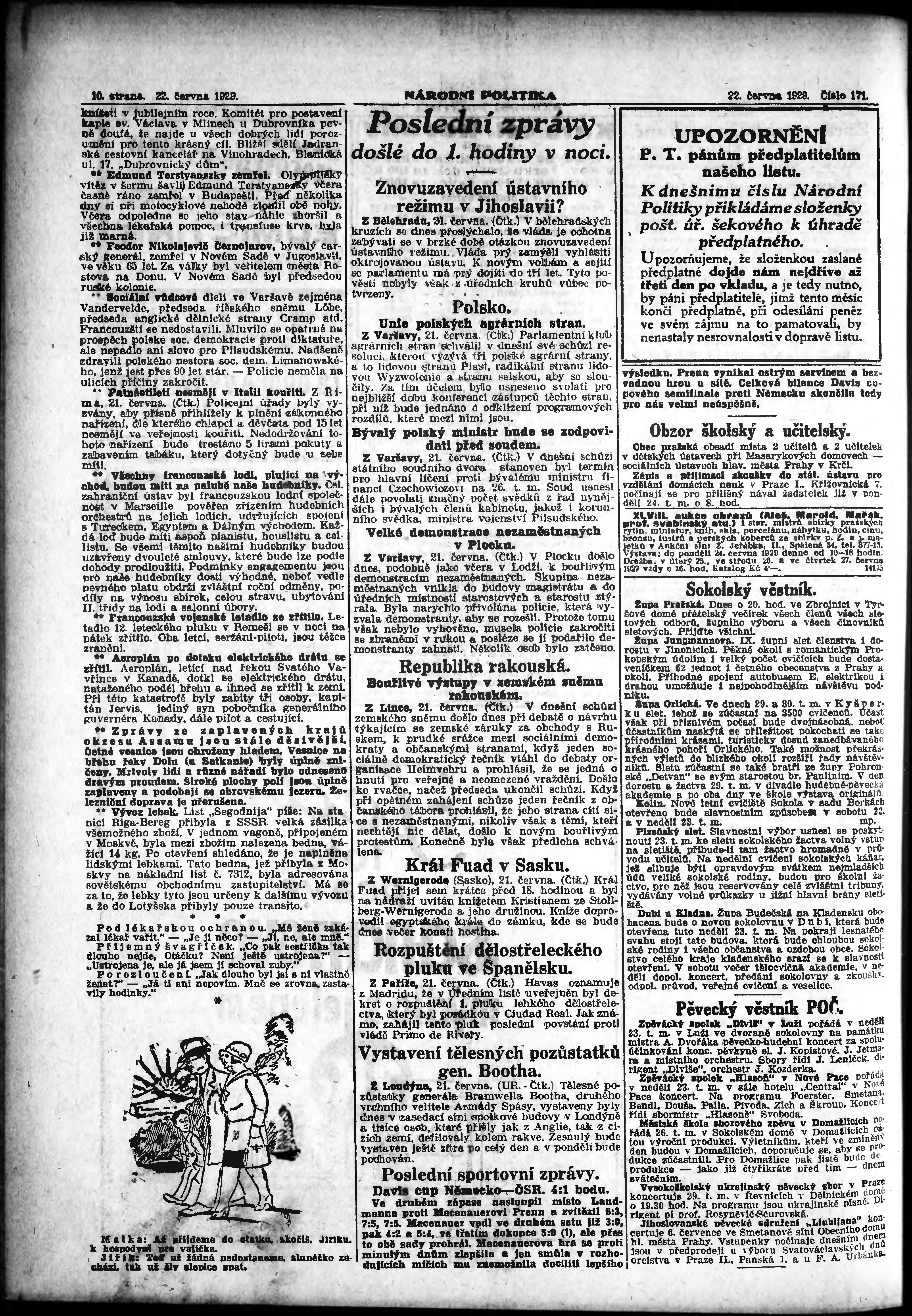 * Datum vydání výtisku: 22.6.1929 Číslo výtisku: 171 Poznámky k výtisku: ranní vydání; 2. vydání;