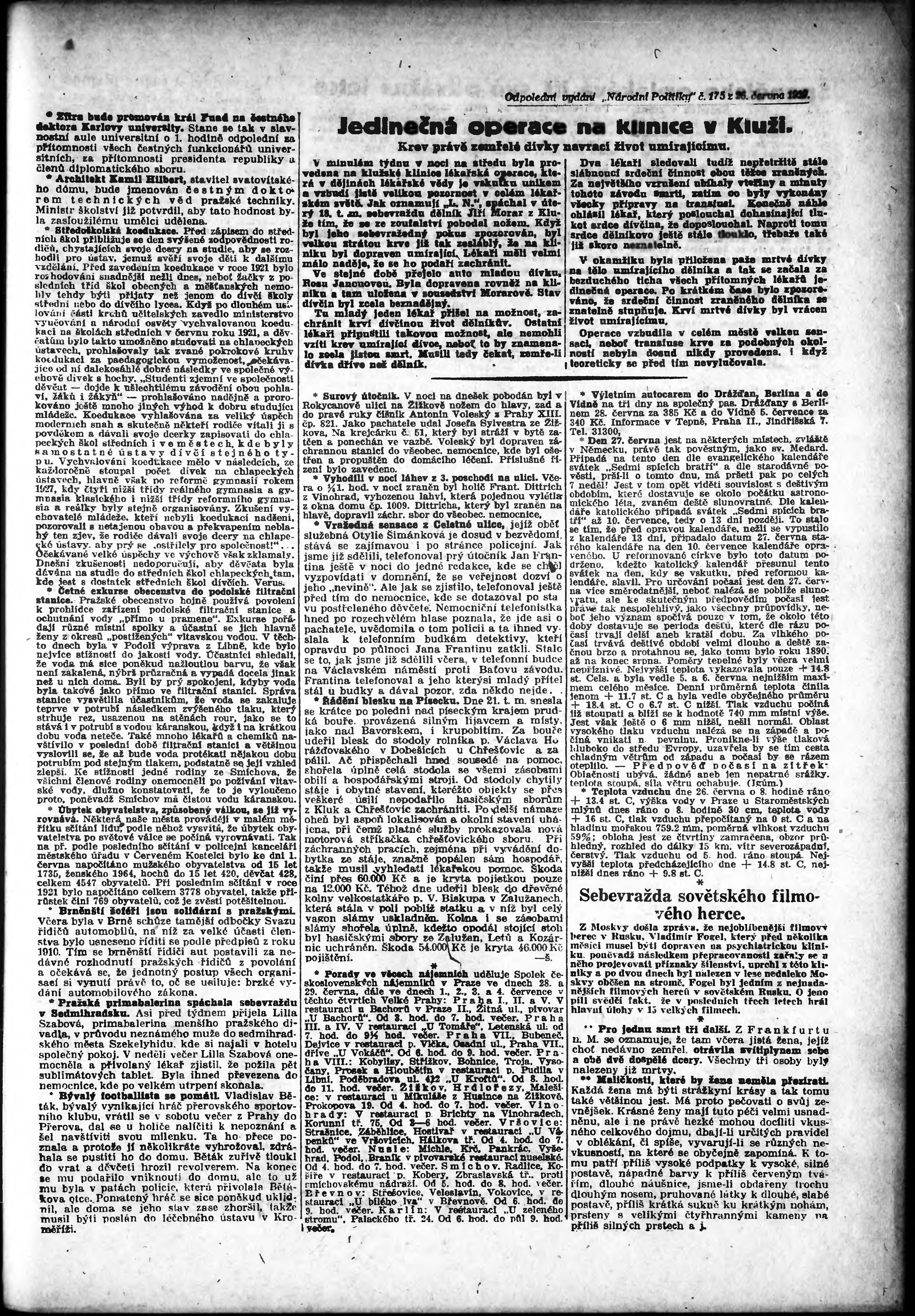 * Datum vydání výtisku: 26.6.1929 Číslo výtisku: 175 Poznámky k výtisku: odpolední vydání;