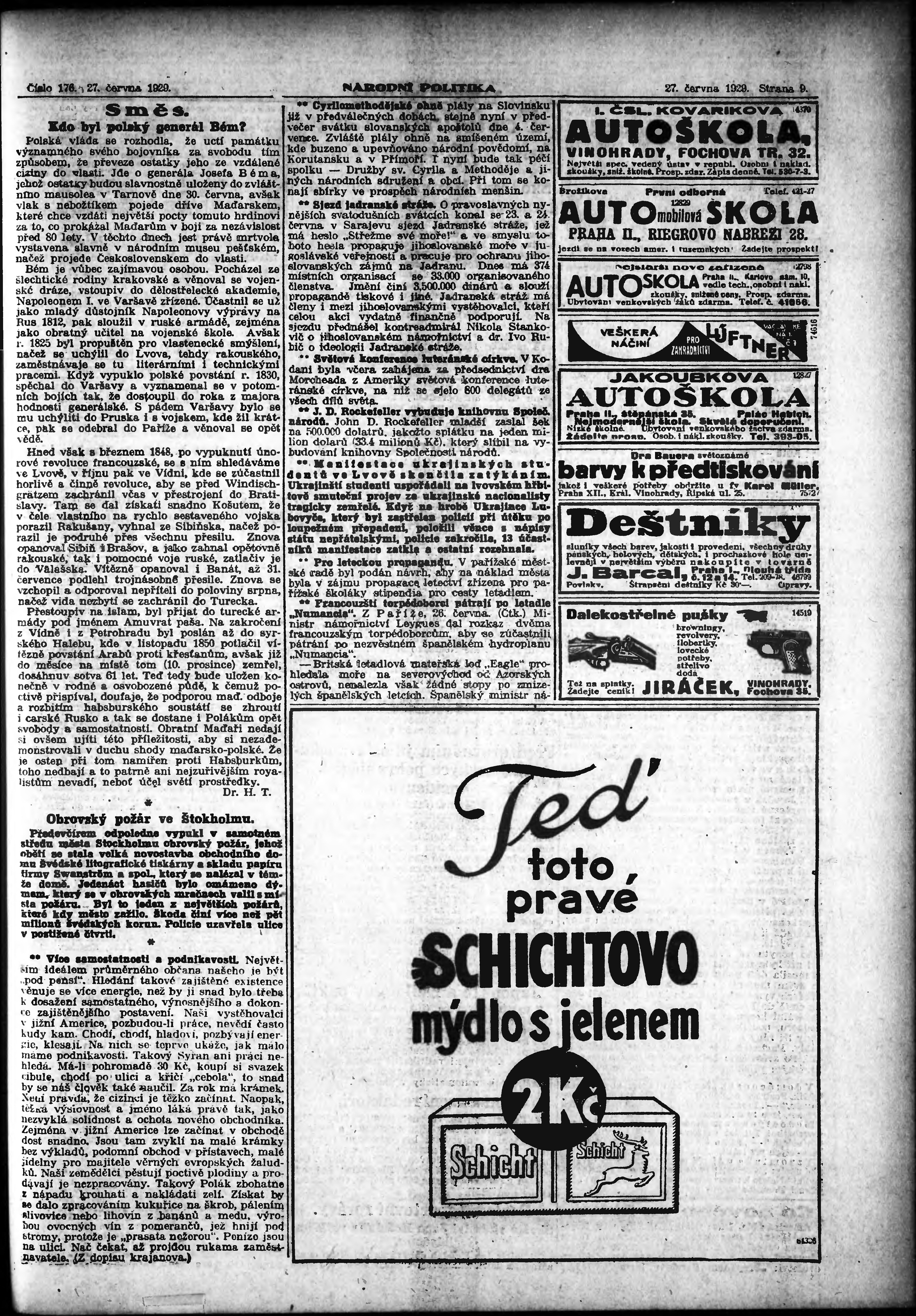 * Datum vydání výtisku: 27.6.1929 Číslo výtisku: 176 Poznámky k výtisku: ranní vydání; vydání pro Prahu;
