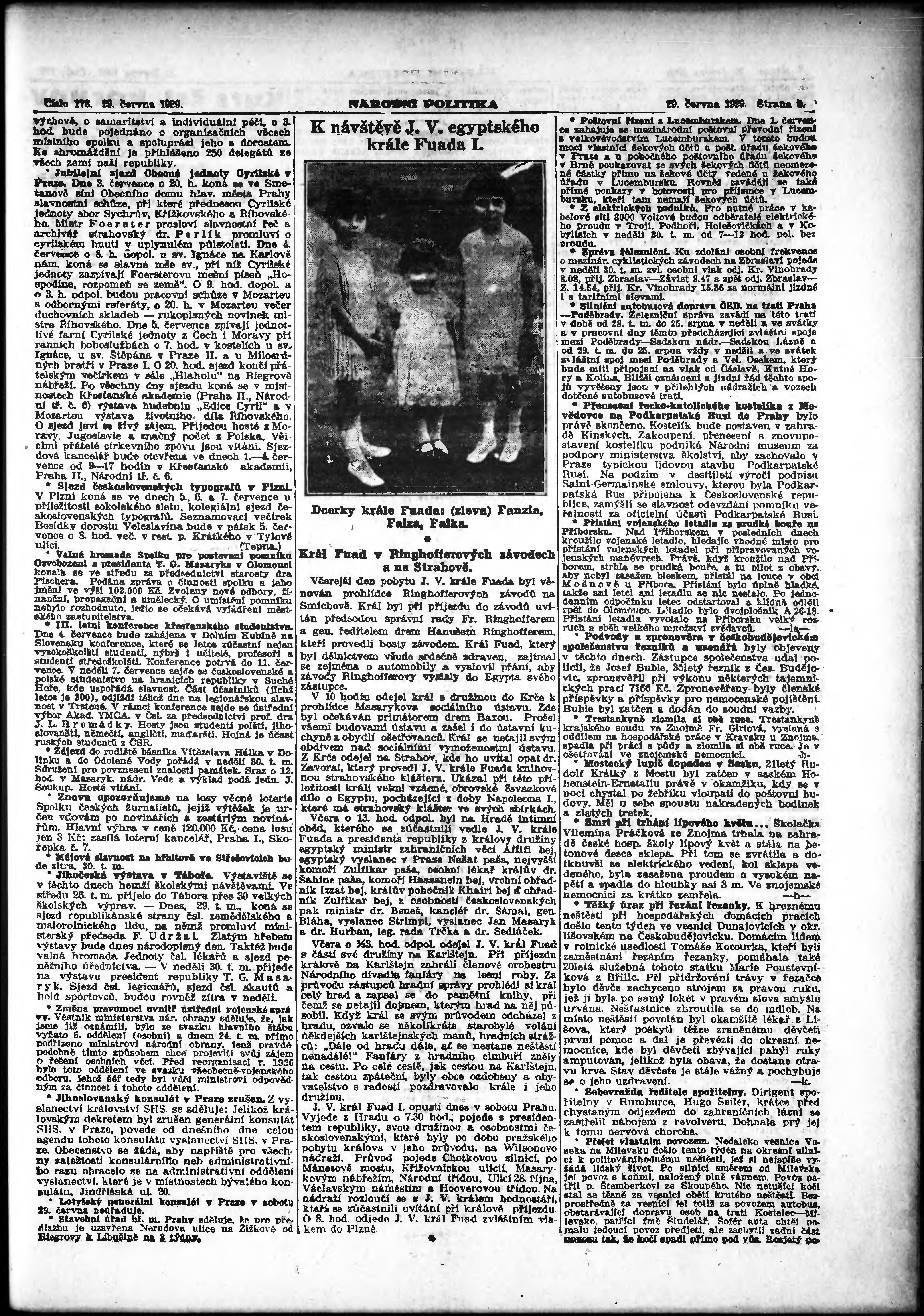 * Datum vydání výtisku: 29.6.1929 Číslo výtisku: 178 Poznámky k výtisku: ranní vydání;