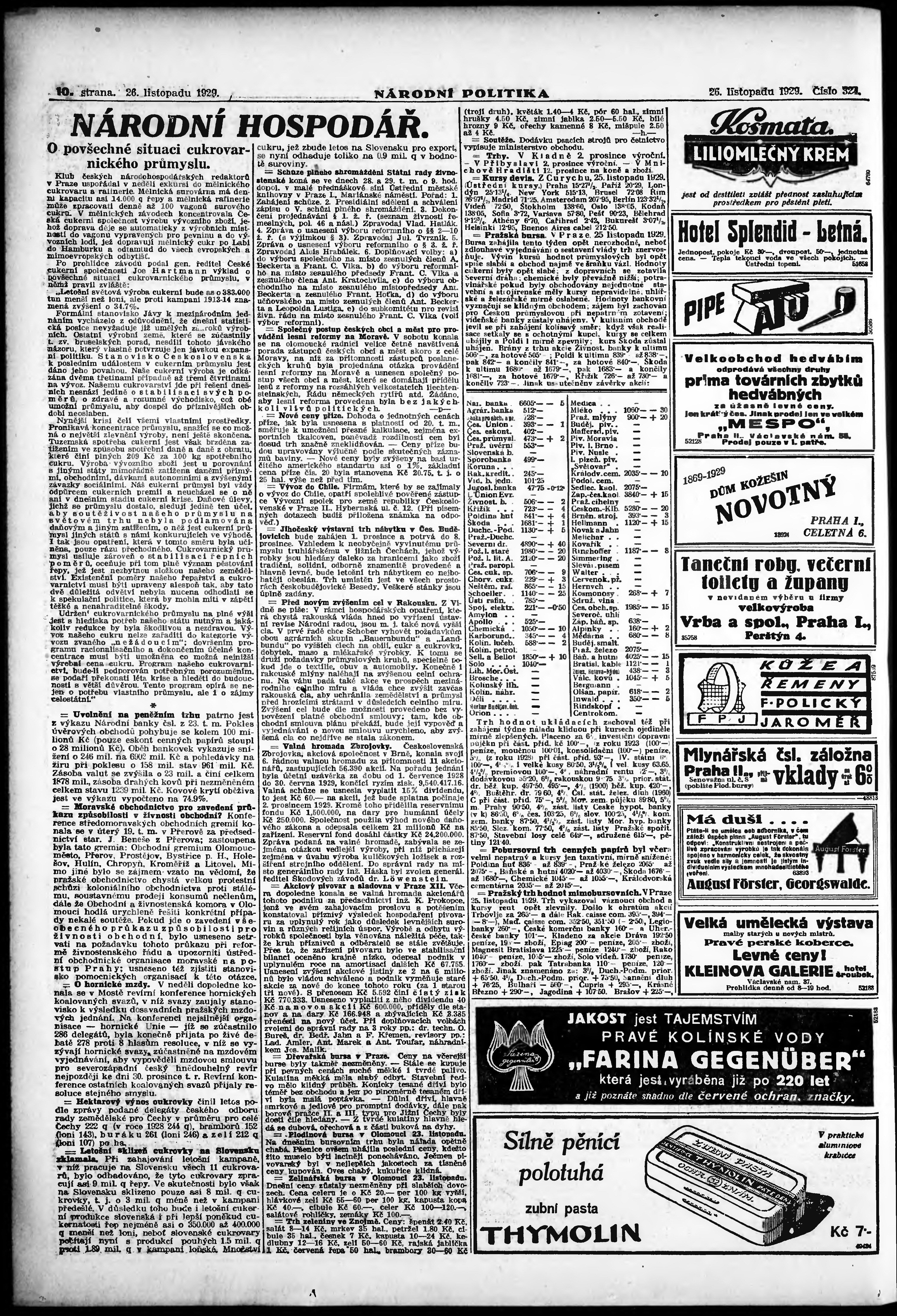 * Datum vydání výtisku: 26.11.1929 Číslo výtisku: 324 Poznámky k výtisku: ranní vydání; vydání pro Prahu;