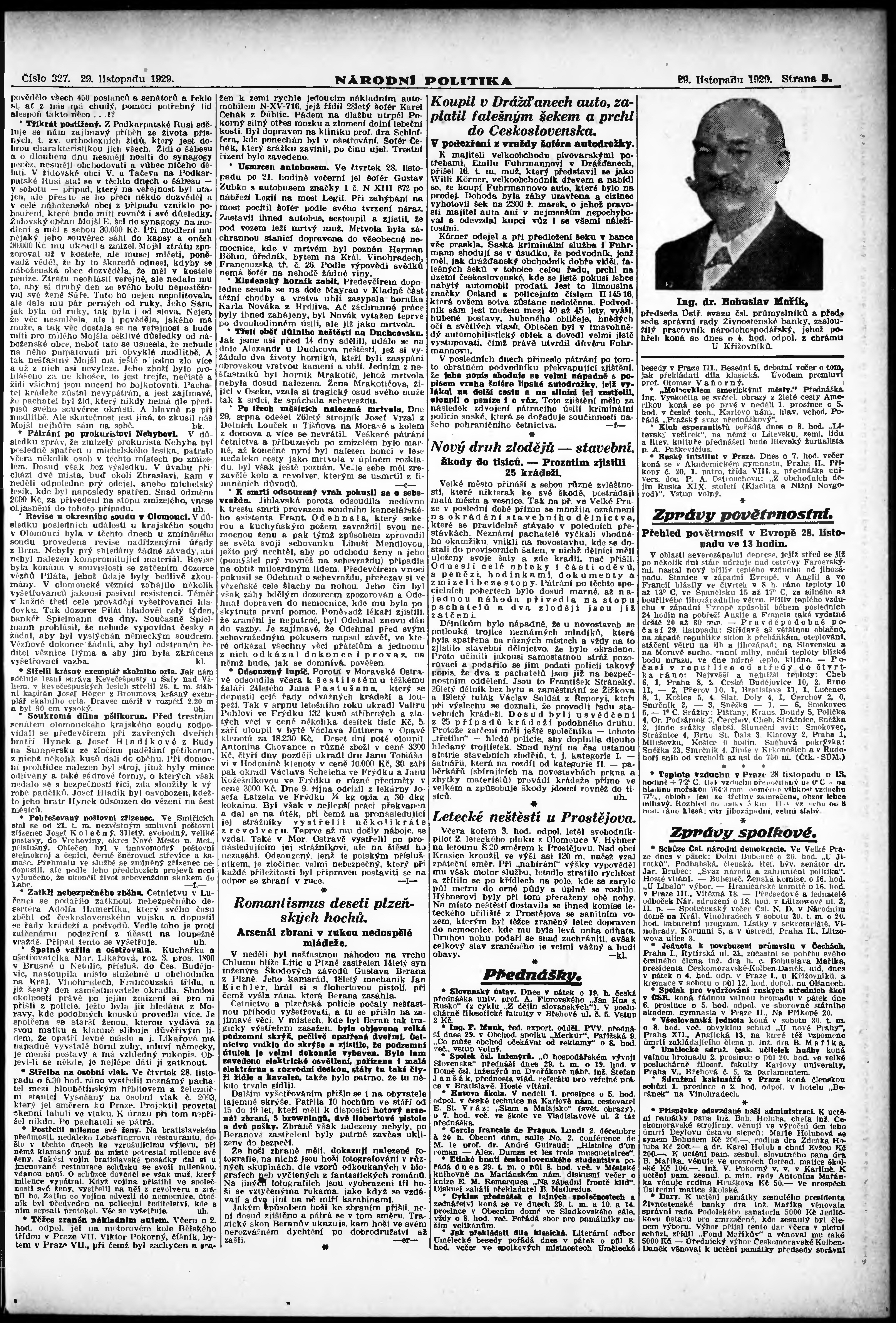 * Datum vydání výtisku: 29.11.1929 Číslo výtisku: 327 Poznámky k výtisku: ranní vydání; vydání pro Prahu;