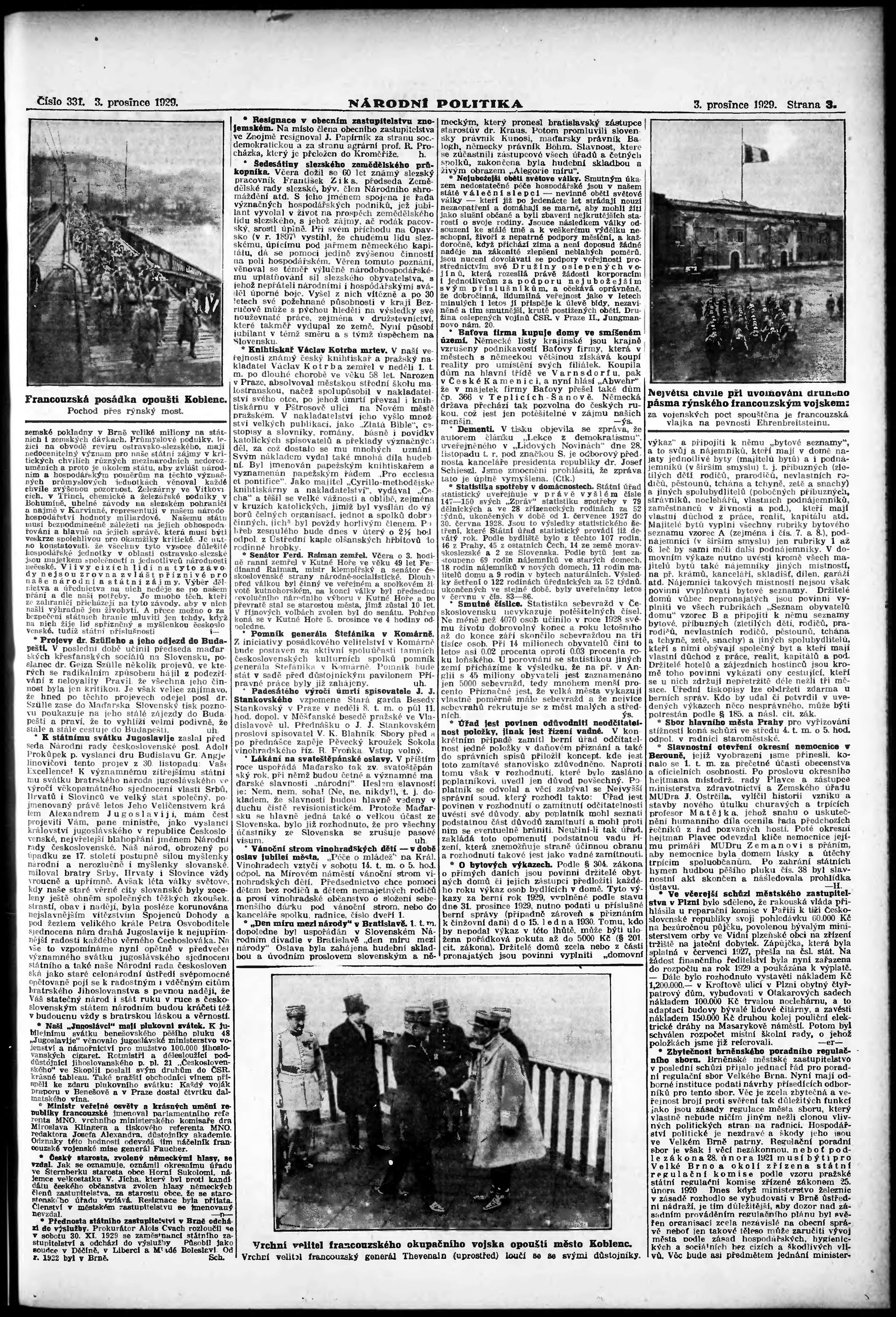 * Datum vydání výtisku: 3.12.1929 Číslo výtisku: 331 Poznámky k výtisku: ranní vydání; vydání pro Prahu;
