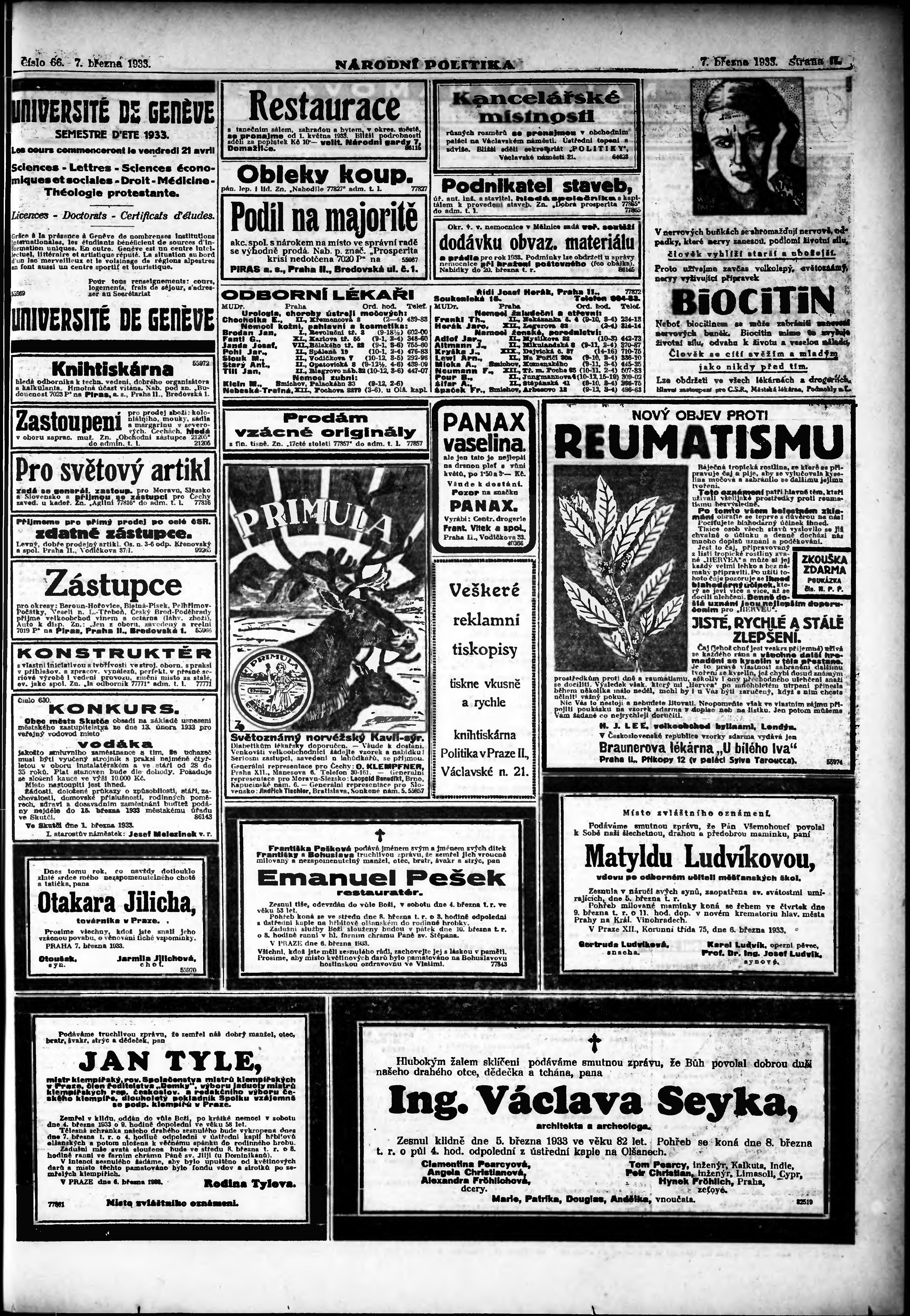 * Datum vydání výtisku: 7.3.1933 Číslo výtisku: 66 Poznámky k výtisku: ranní vydání; vydání pro Prahu;