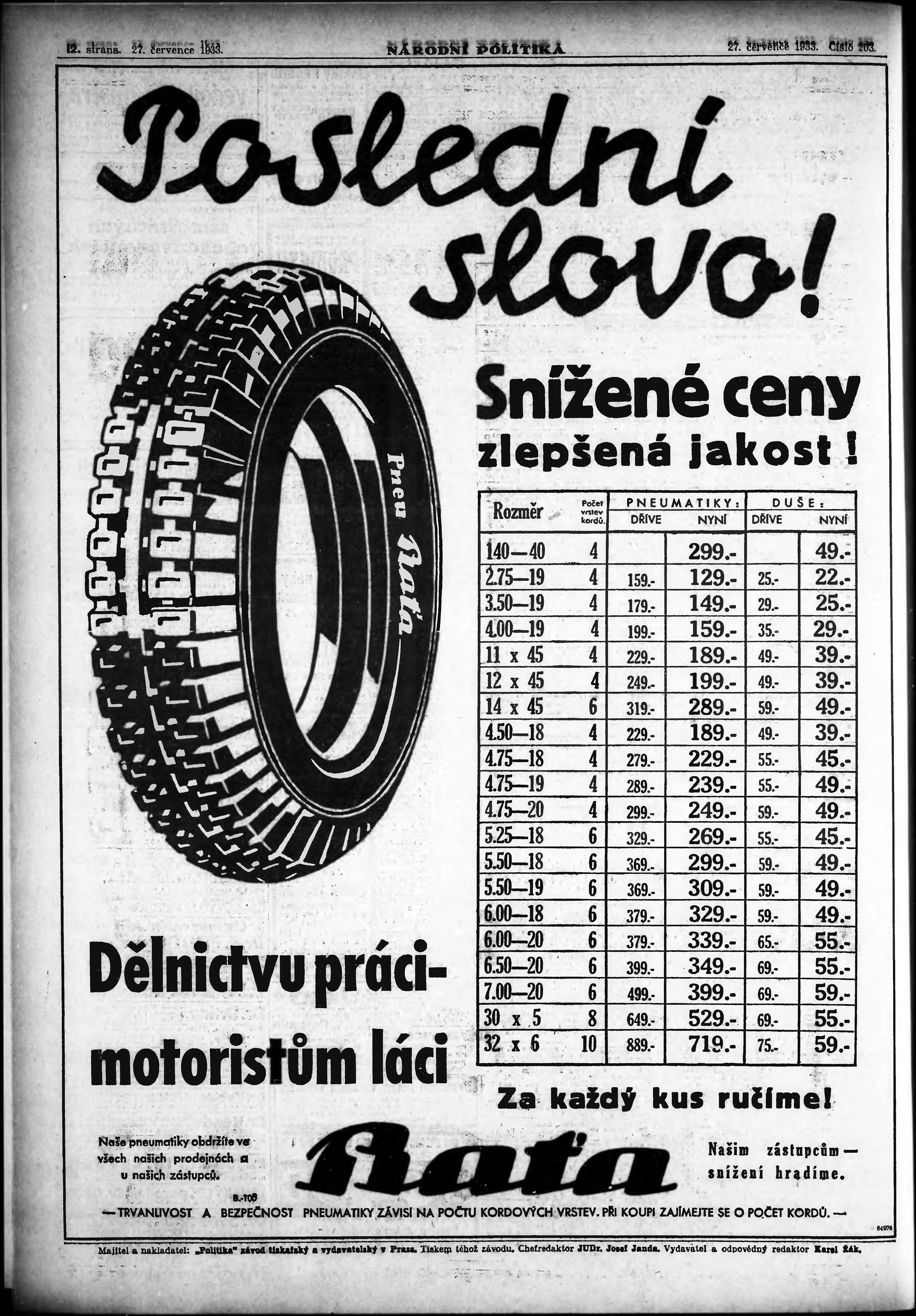 ranní vydání; vydání pro Prahu;