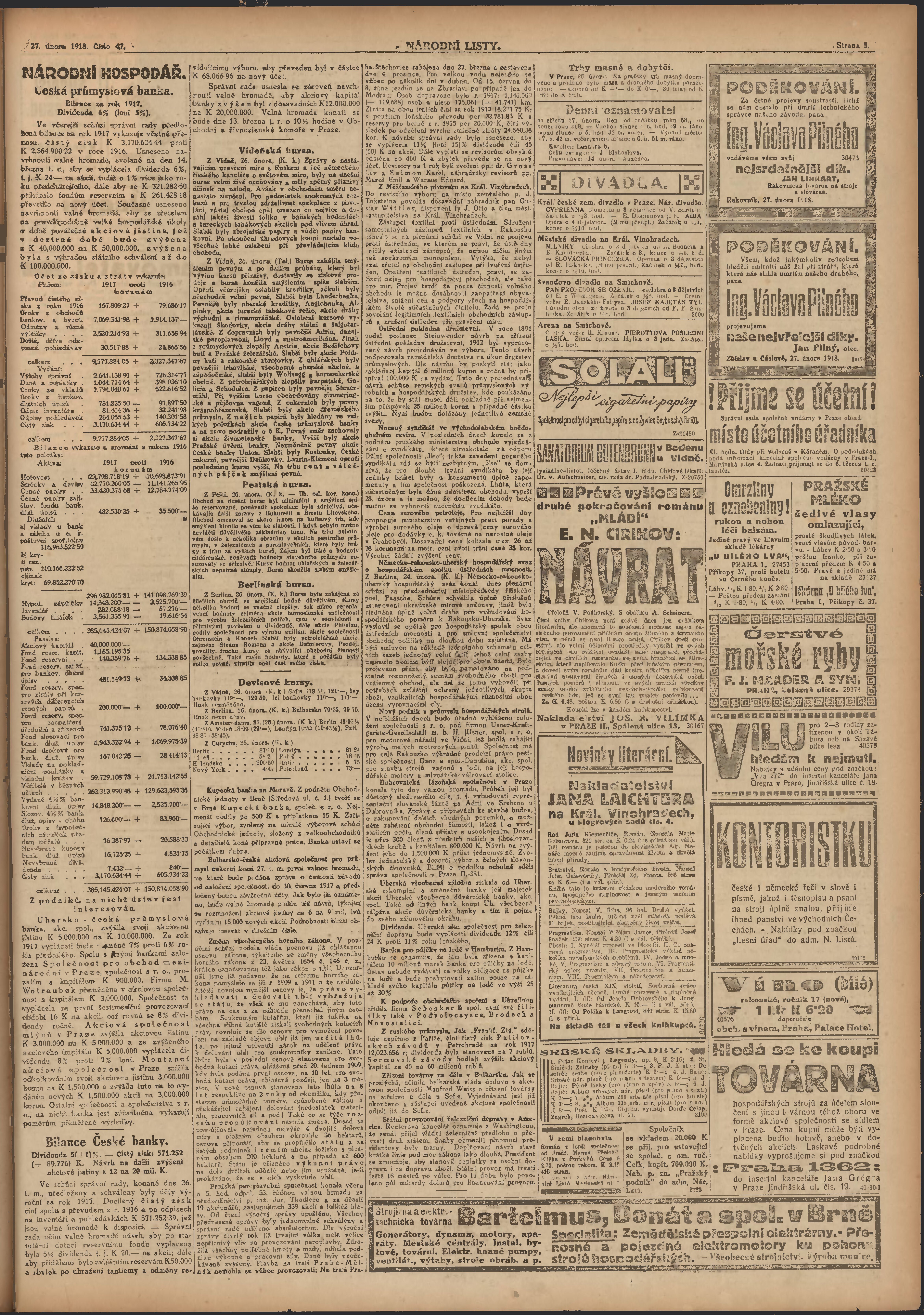 * Datum vydání výtisku: 27.2.1918 Číslo výtisku: 47 Poznámky k výtisku: ranní vydání; 2. vydání pro Prahu;