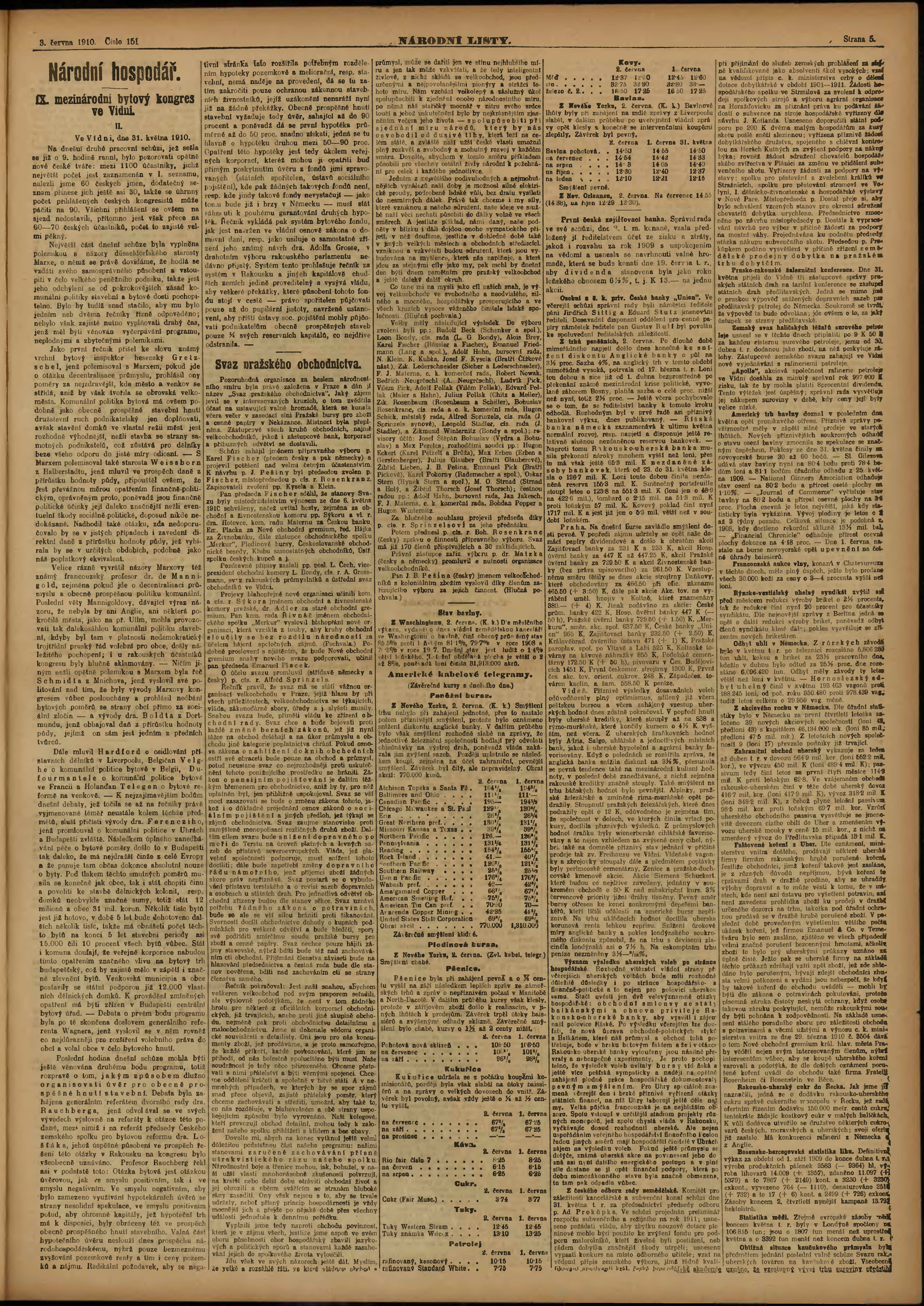 * Datum vydání výtisku: 3.6.1910 Číslo výtisku: 151 Poznámky k výtisku: ranní vydání;