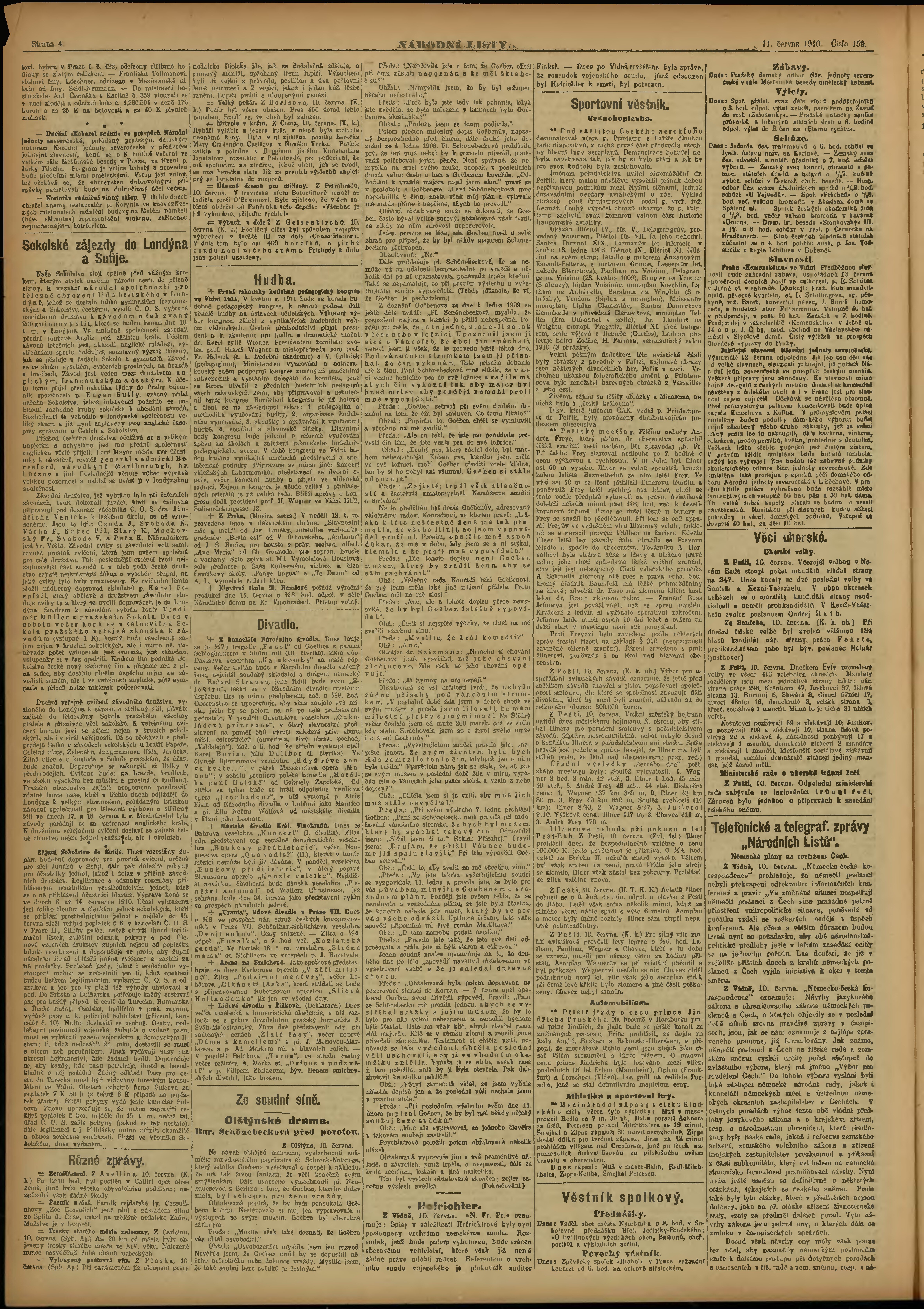 * Datum vydání výtisku: 11.6.1910 Číslo výtisku: 159 Poznámky k výtisku: ranní vydání;