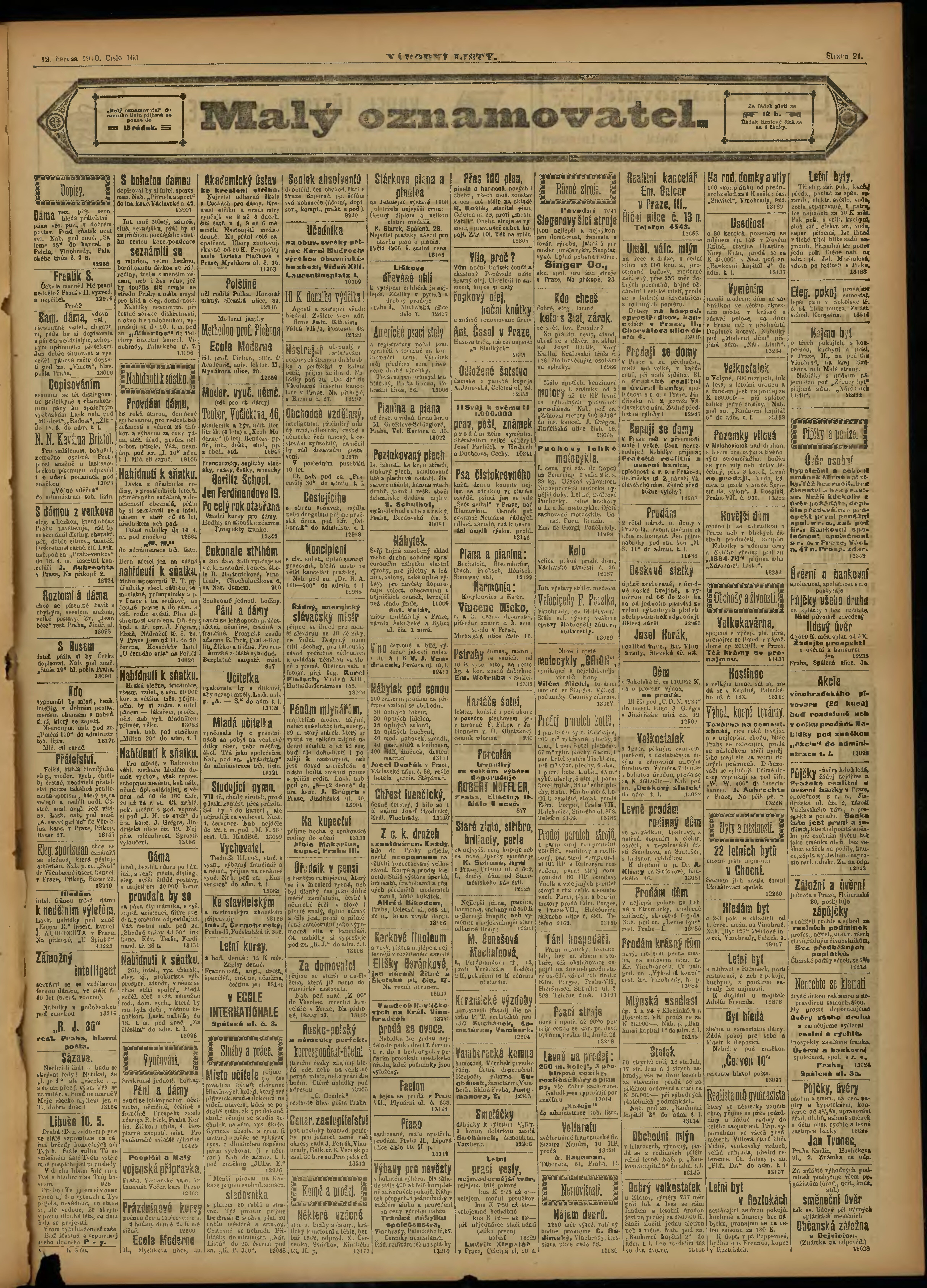 * Datum vydání výtisku: 12.6.1910 Číslo výtisku: 160 Poznámky k výtisku: ranní vydání;