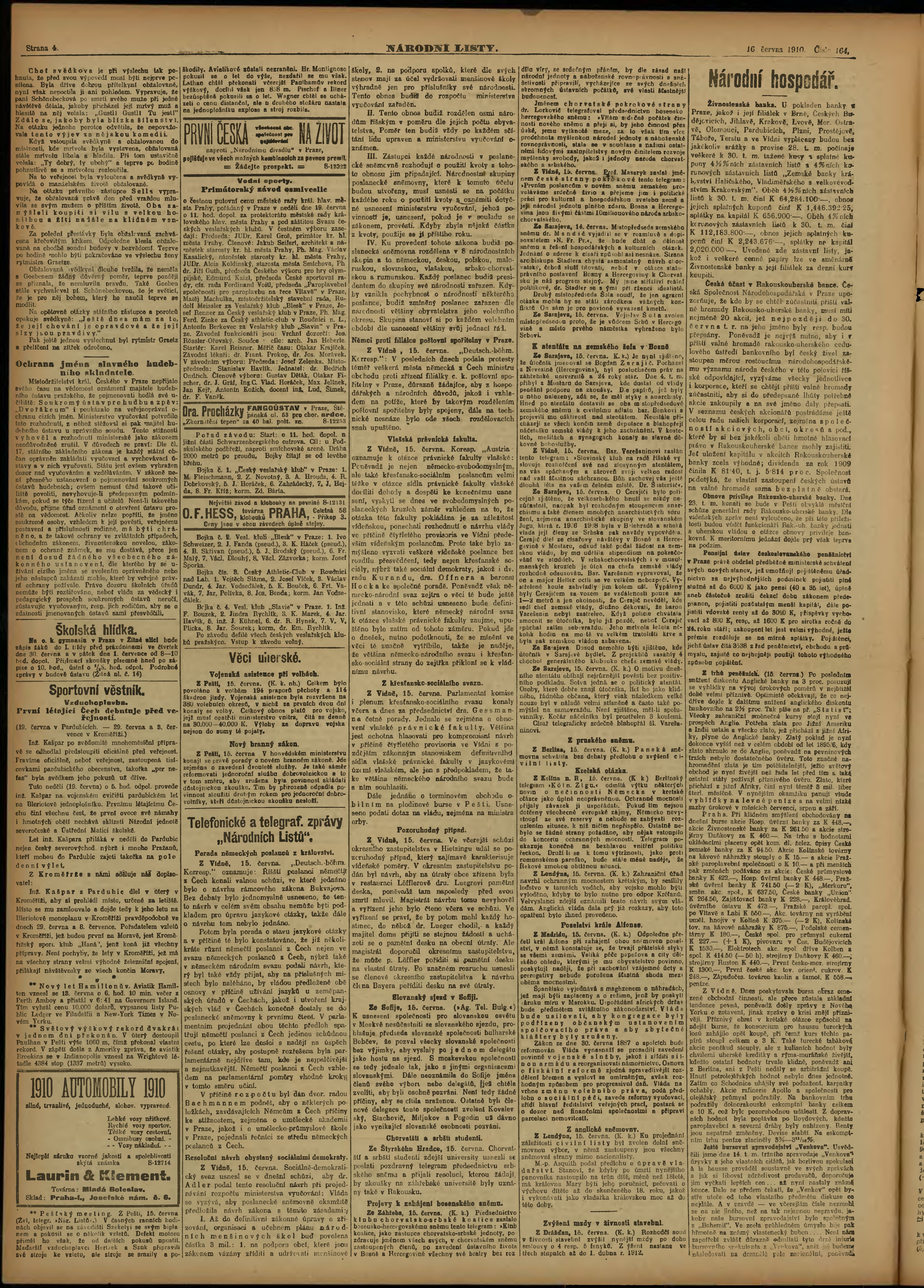 * Datum vydání výtisku: 16.6.1910 Číslo výtisku: 164 Poznámky k výtisku: ranní vydání;