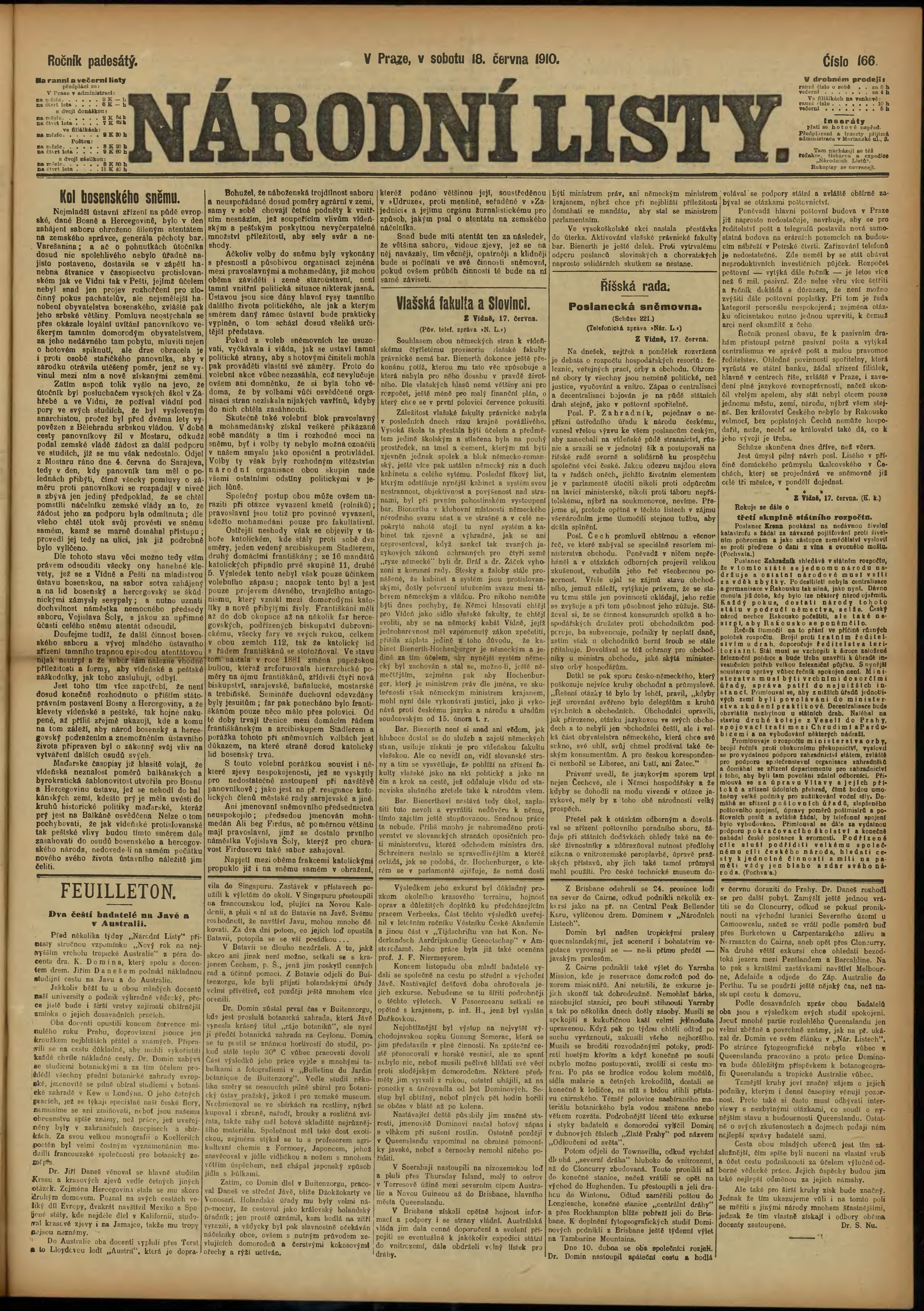 * Datum vydání výtisku: 18.6.1910 Číslo výtisku: 166 Poznámky k výtisku: ranní vydání;