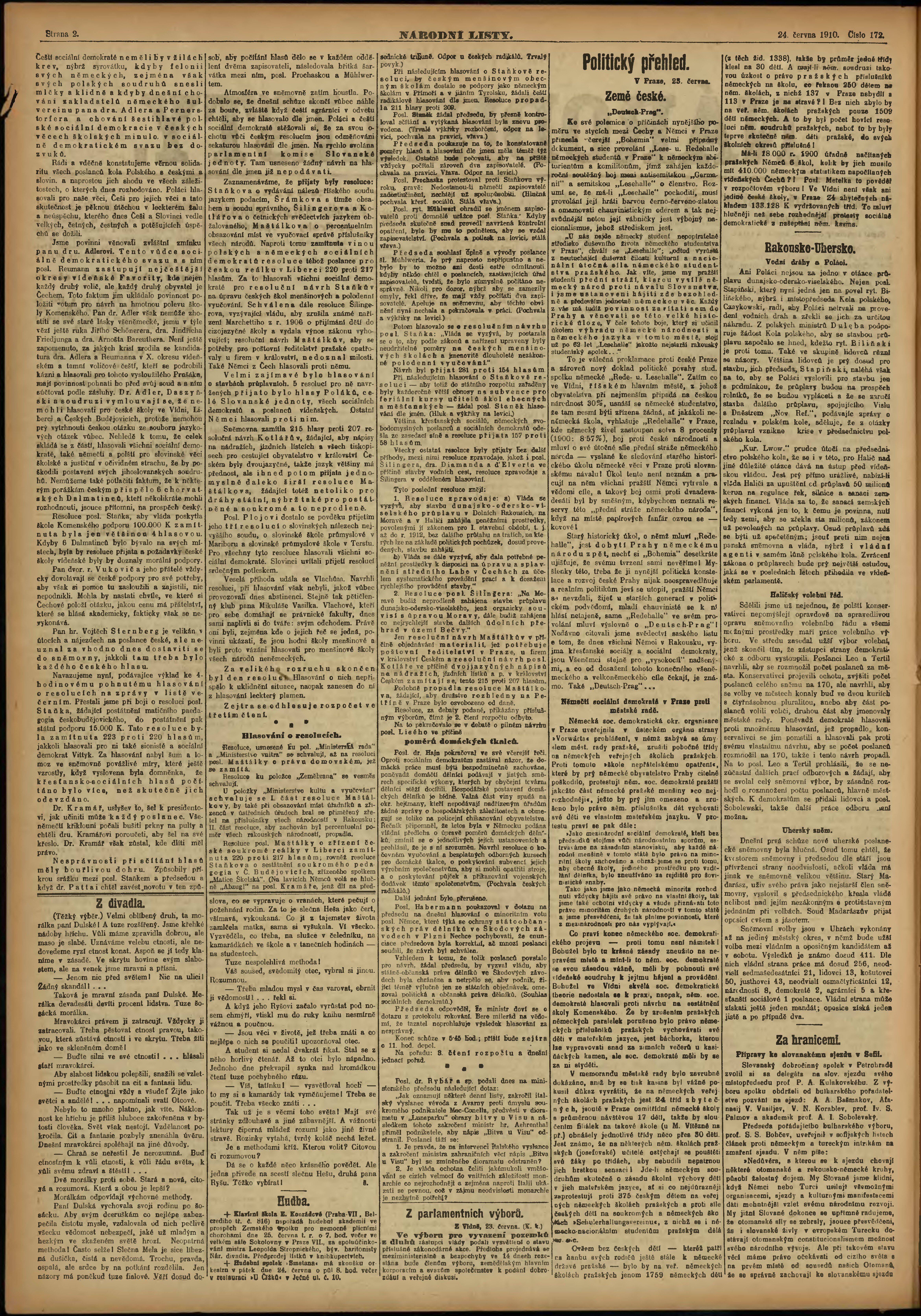 * Datum vydání výtisku: 24.6.1910 Číslo výtisku: 172 Poznámky k výtisku: ranní vydání;