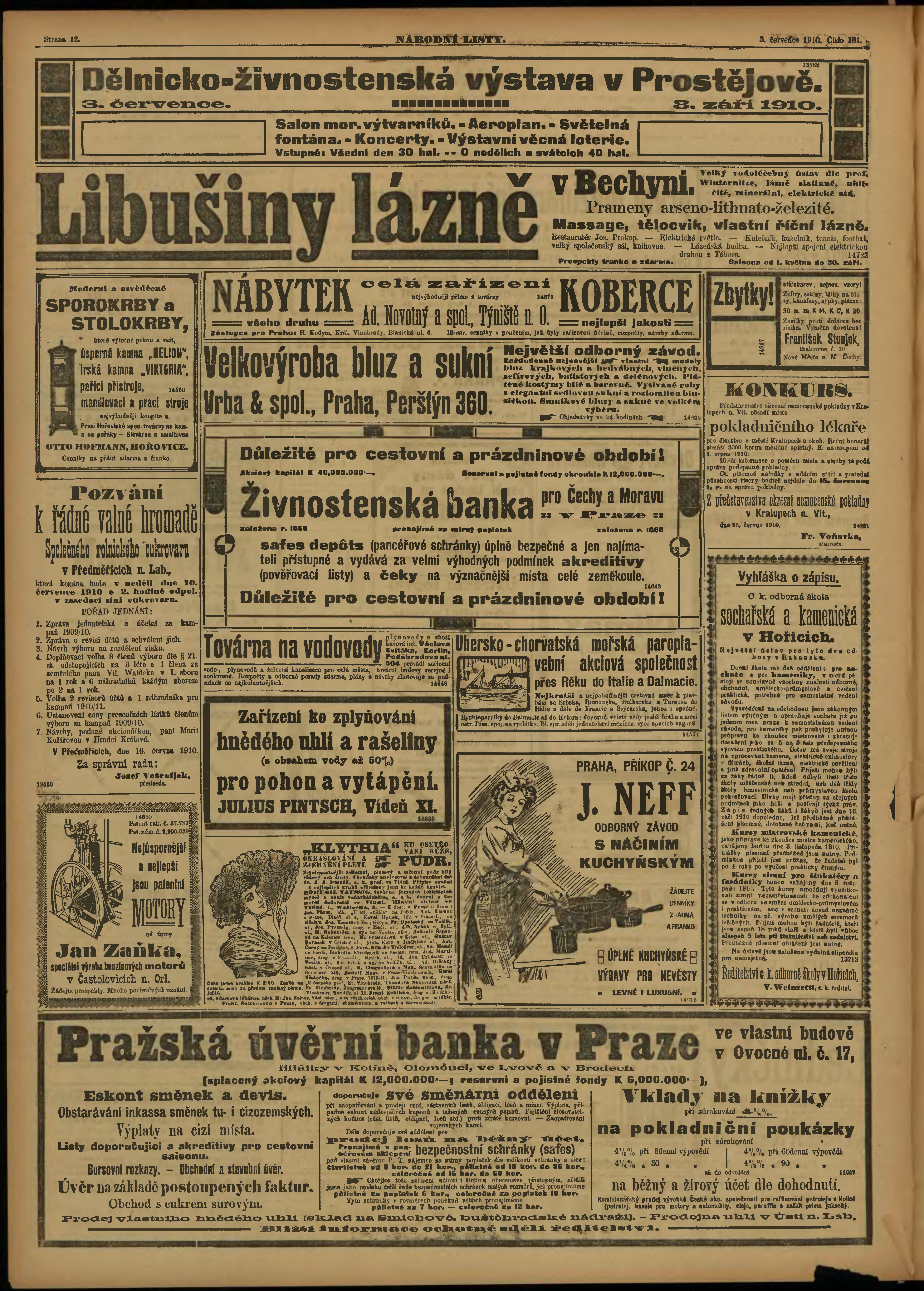 * Datum vydání výtisku: 3.7.1910 Číslo výtisku: 181 Poznámky k výtisku: ranní vydání;