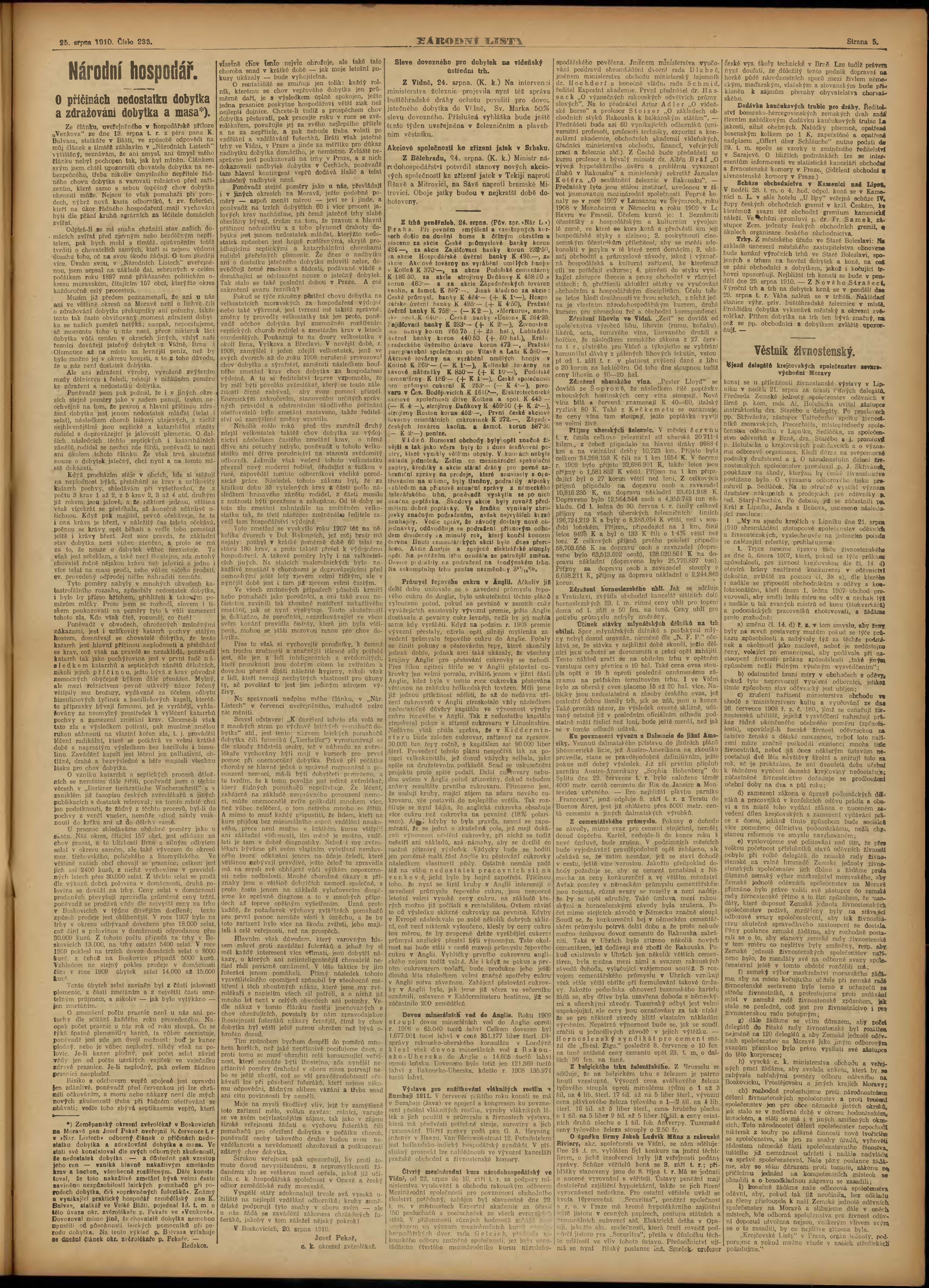 * Datum vydání výtisku: 25.8.1910 Číslo výtisku: 233 Poznámky k výtisku: ranní vydání;