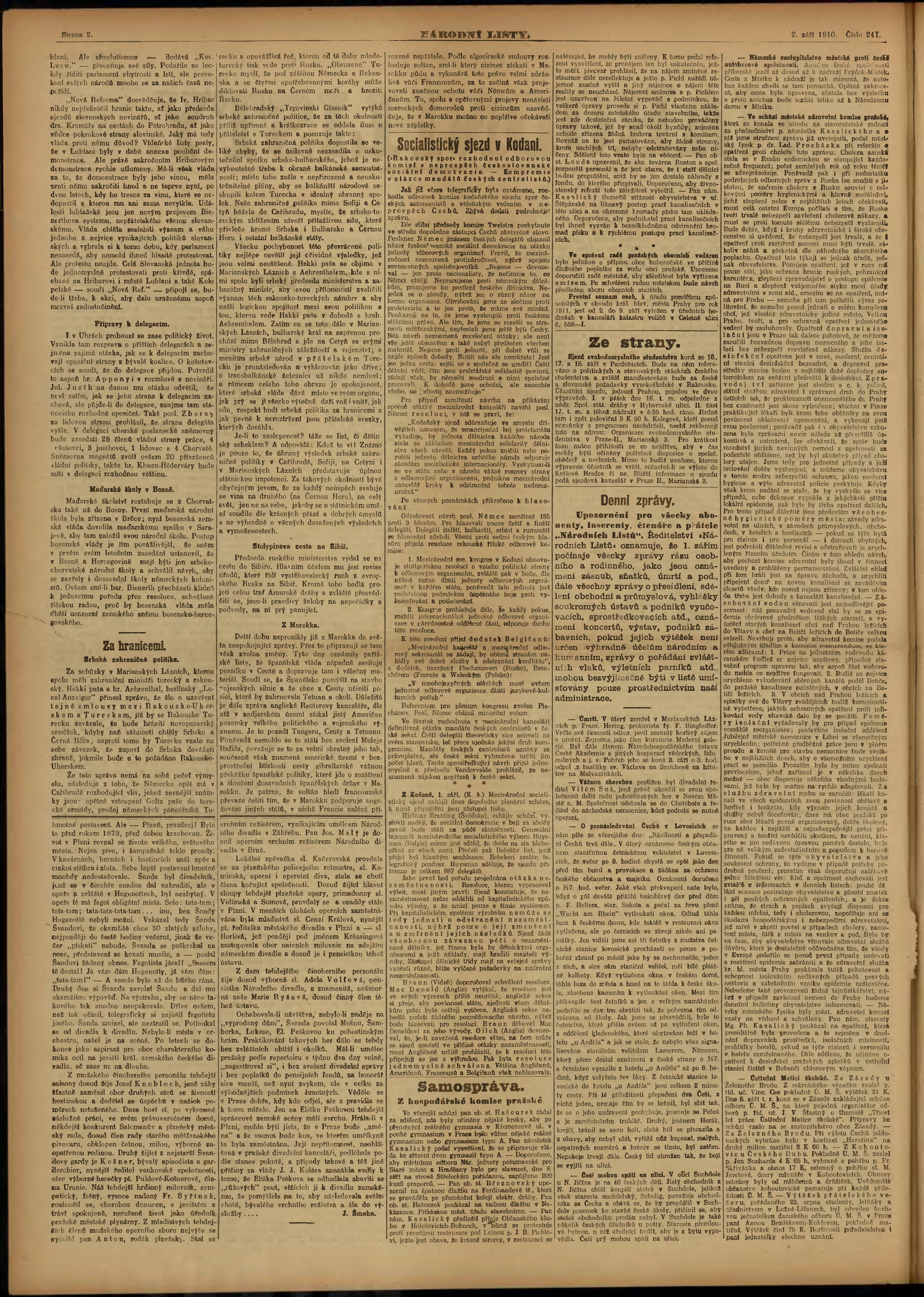 * Datum vydání výtisku: 2.9.1910 Číslo výtisku: 241 Poznámky k výtisku: ranní vydání;