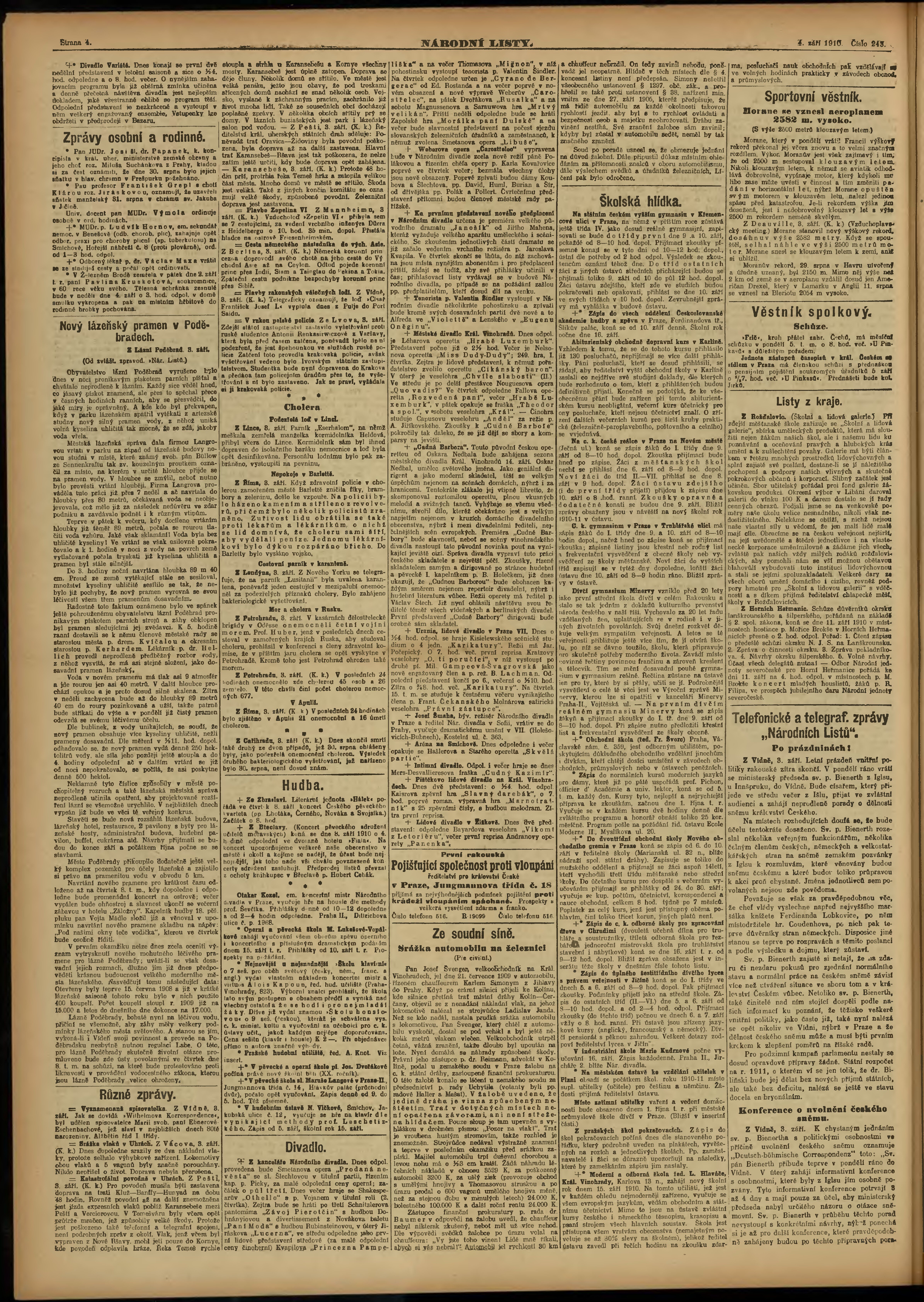 * Datum vydání výtisku: 4.9.1910 Číslo výtisku: 243 Poznámky k výtisku: ranní vydání;