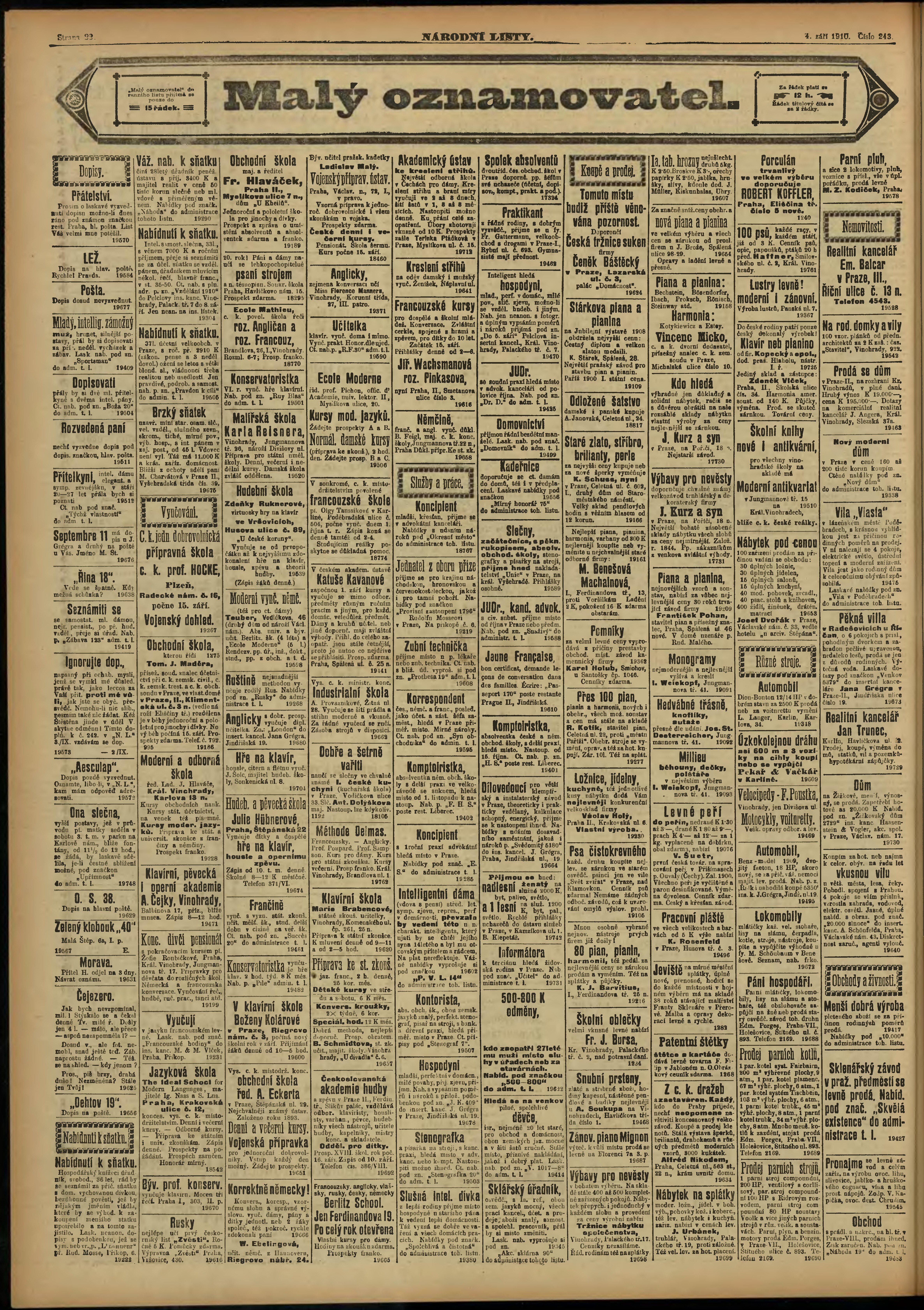 * Datum vydání výtisku: 4.9.1910 Číslo výtisku: 243 Poznámky k výtisku: ranní vydání;